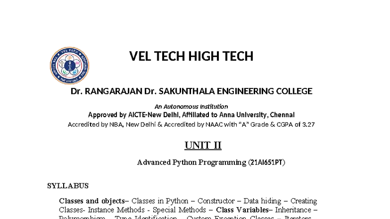 Unit II - Advanced Python Programming (21AI651PT) Notes - Studocu