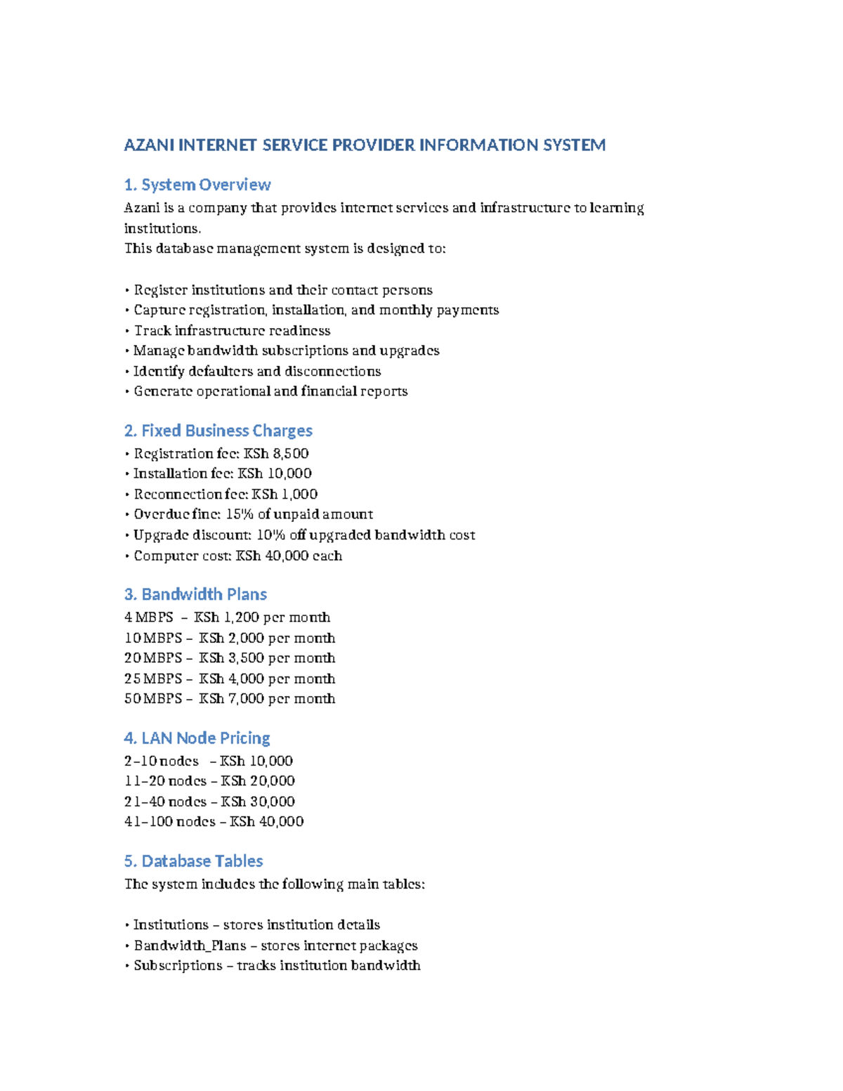 AZA 101: Azani ISP Database System Overview and Features - Studocu