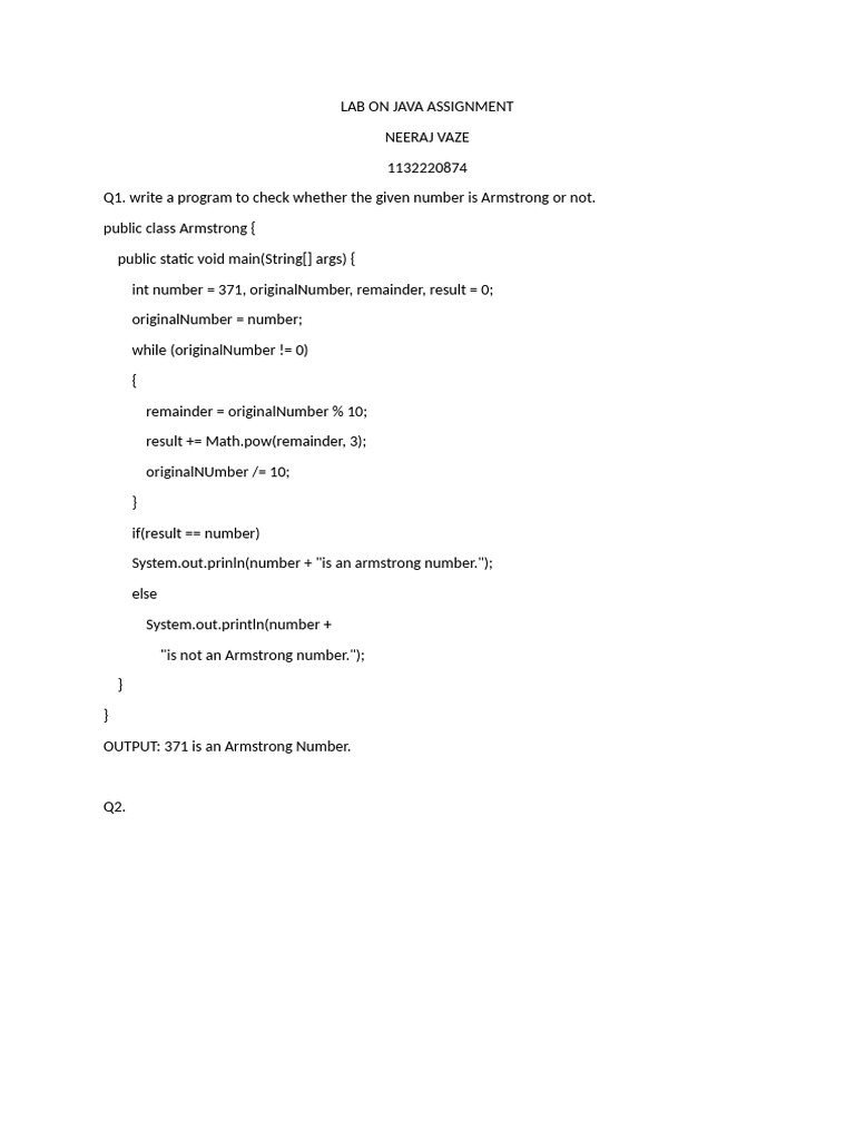 Java Assignment 2 - Good - Java Assignment 2 Name- Ansh Gupta Sys Id ...