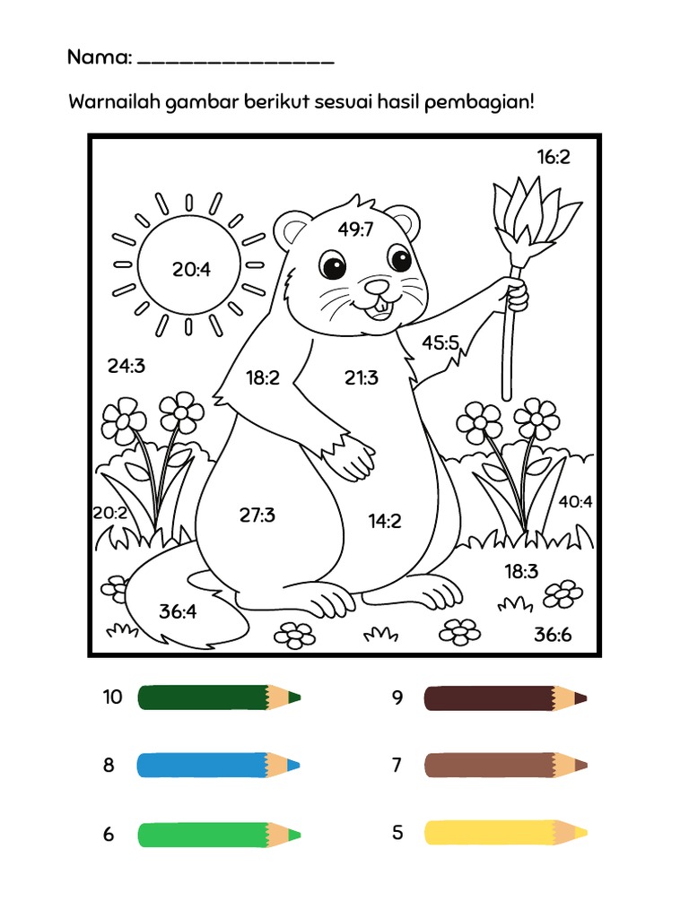 Worksheet Mewarnai bunga sesuai angka | Kindergarten coloring pages ...