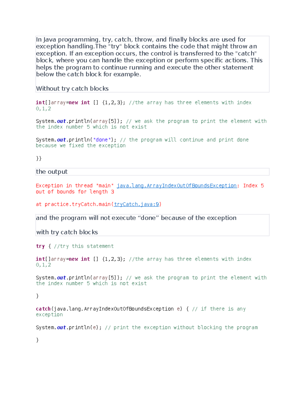 Diss 1 - Discussion Forum 1 - In Java programming, try, catch, throw ...
