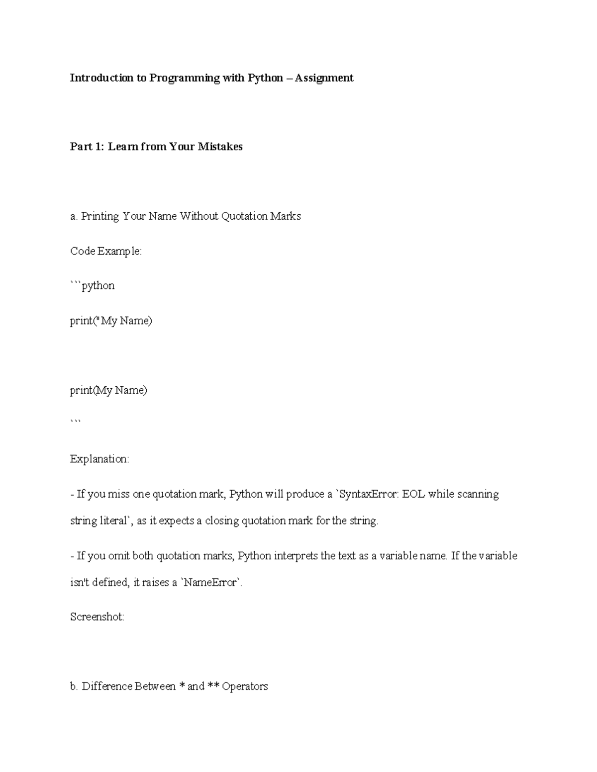 Programming assignment unit 1 - Introduction to Programming with Python ...