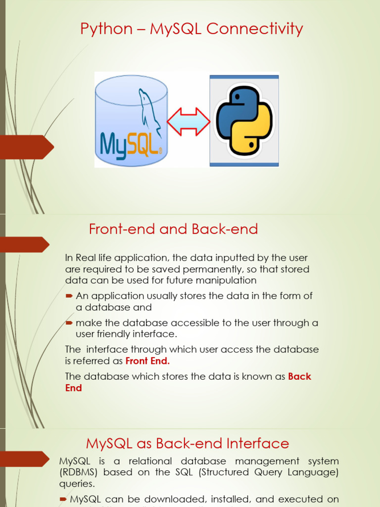 Interface Python with MySQL connectivity.pptx | Databases | Computer ...