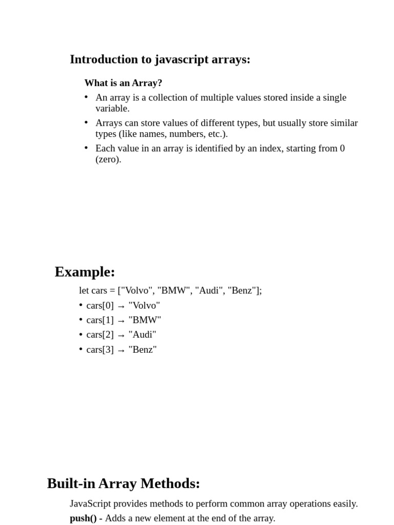 Based on this image's title: “Introduction To Javascript Arrays | PDF”