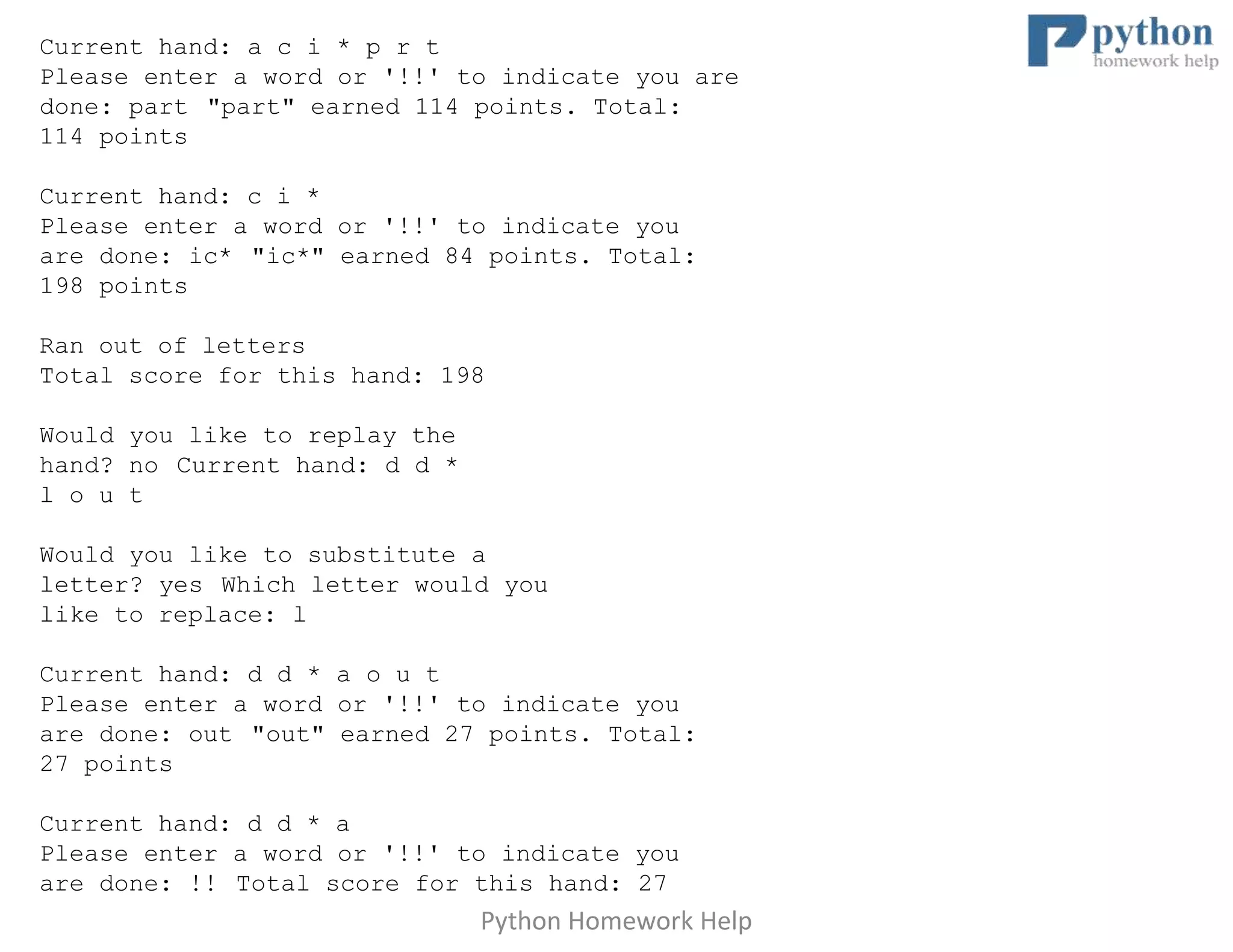 Based on this image's title: “Python Homework Help”