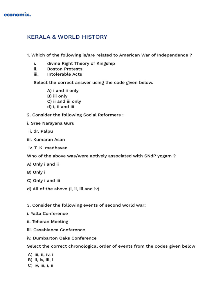 HSSRPTR - Plus Two Kerala History Pre Years Question Bank | PDF ...