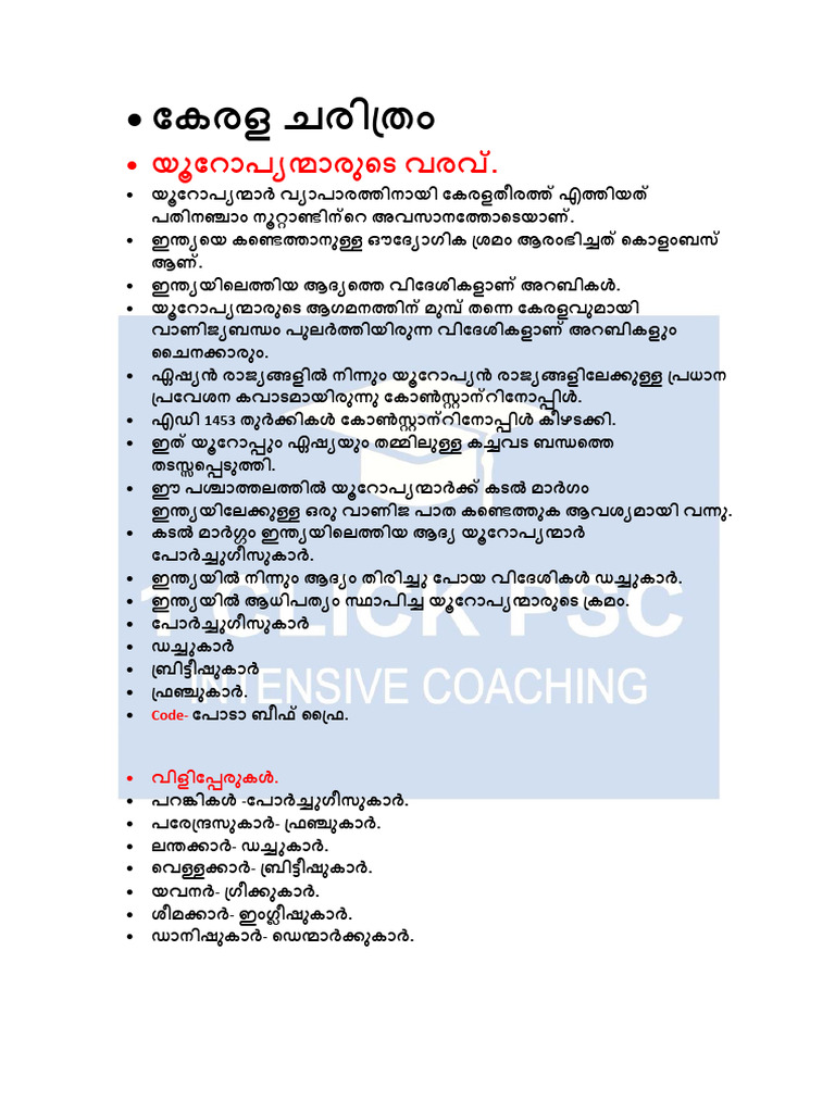 Kerala History-Sa Day-1 | PDF