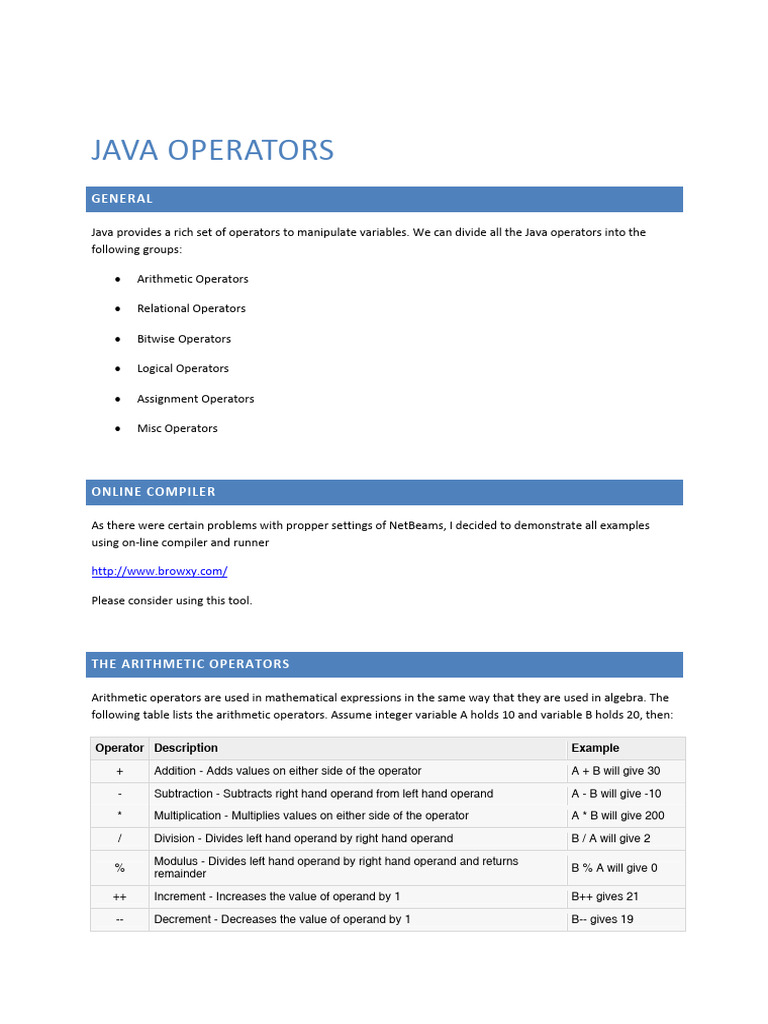 Java Operators. Previous Lesson -> Java Comments | by Darius Boengiu ...