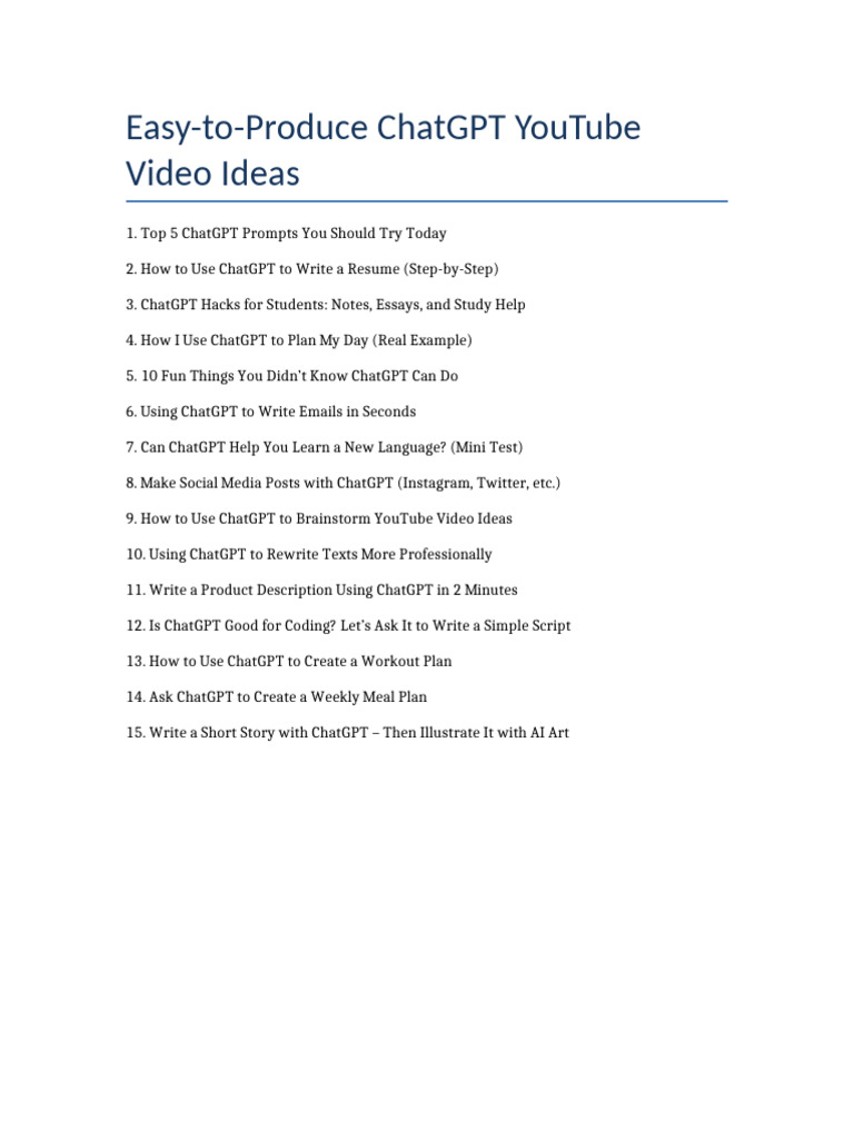 Easy ChatGPT YouTube Video Ideas | PDF