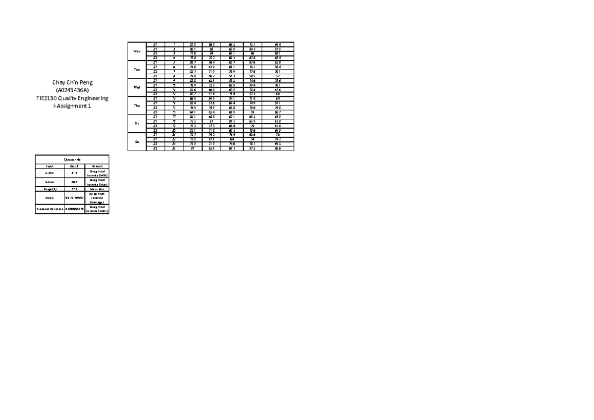Assignment 1 Group 13 - S1 1 87 86 66 73 69. S1 2 80 68 67 84 87. S2 3 ...