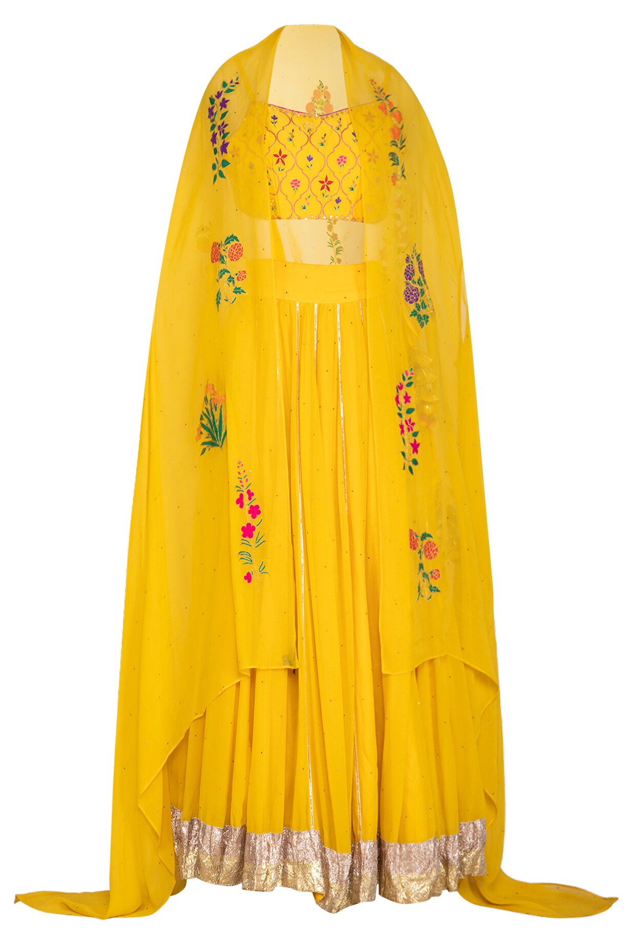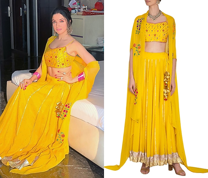 Yellow Embroidered Lehenga Set With Cape by Ayinat By Taniya O'Connor ...
