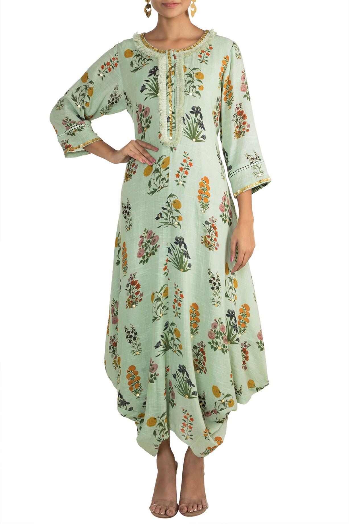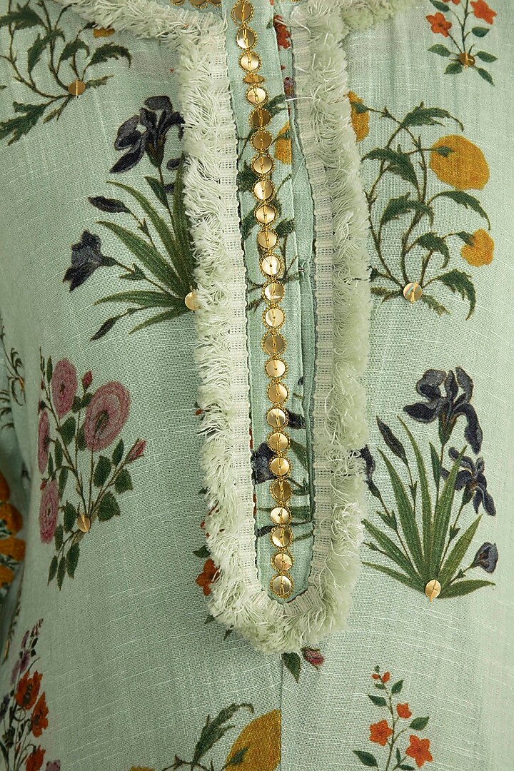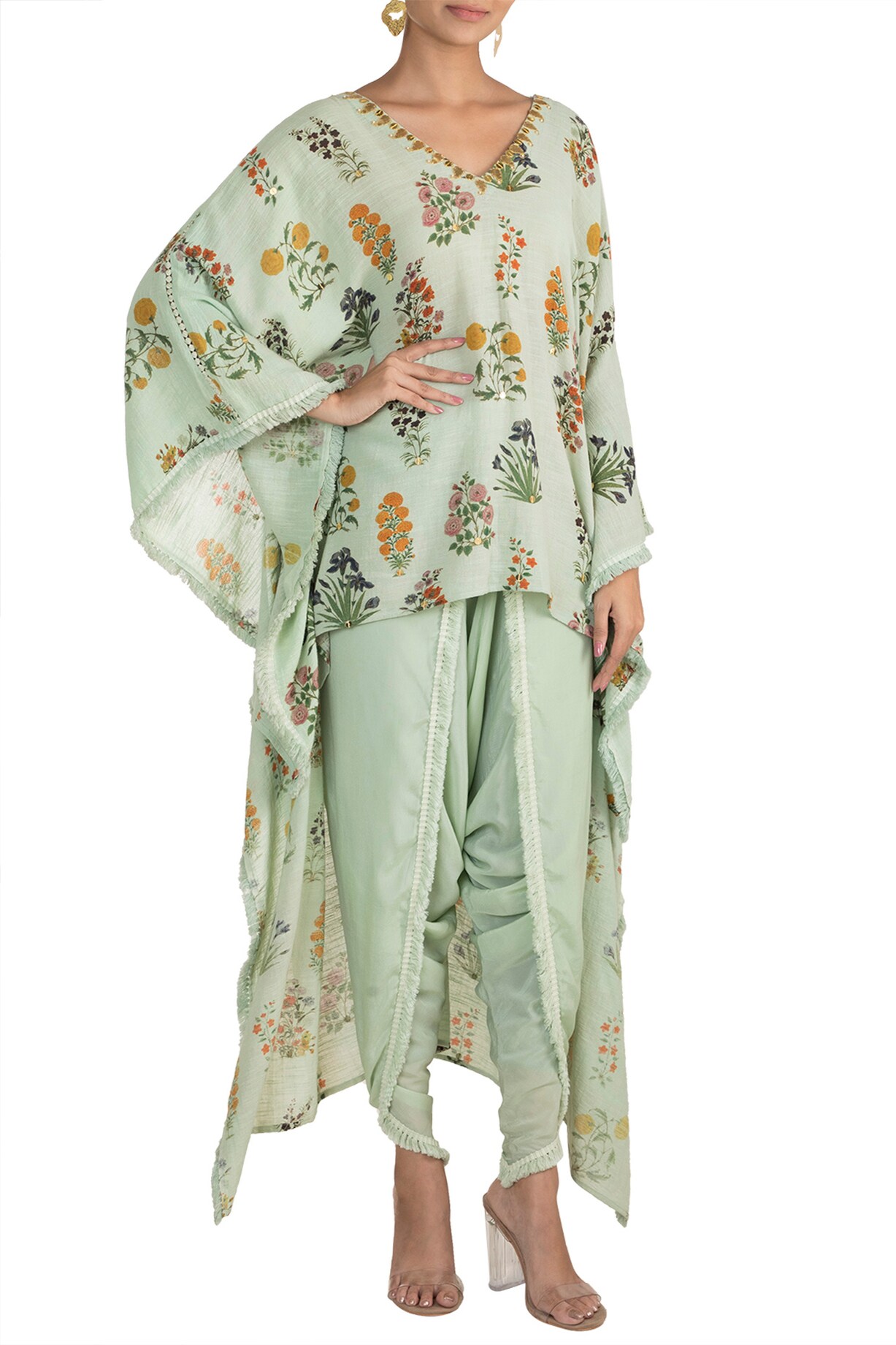 Mint Green Embellished Printed Kaftan With Dhoti Pants by Ayinat By ...