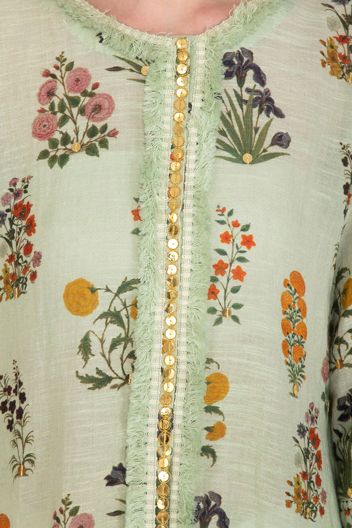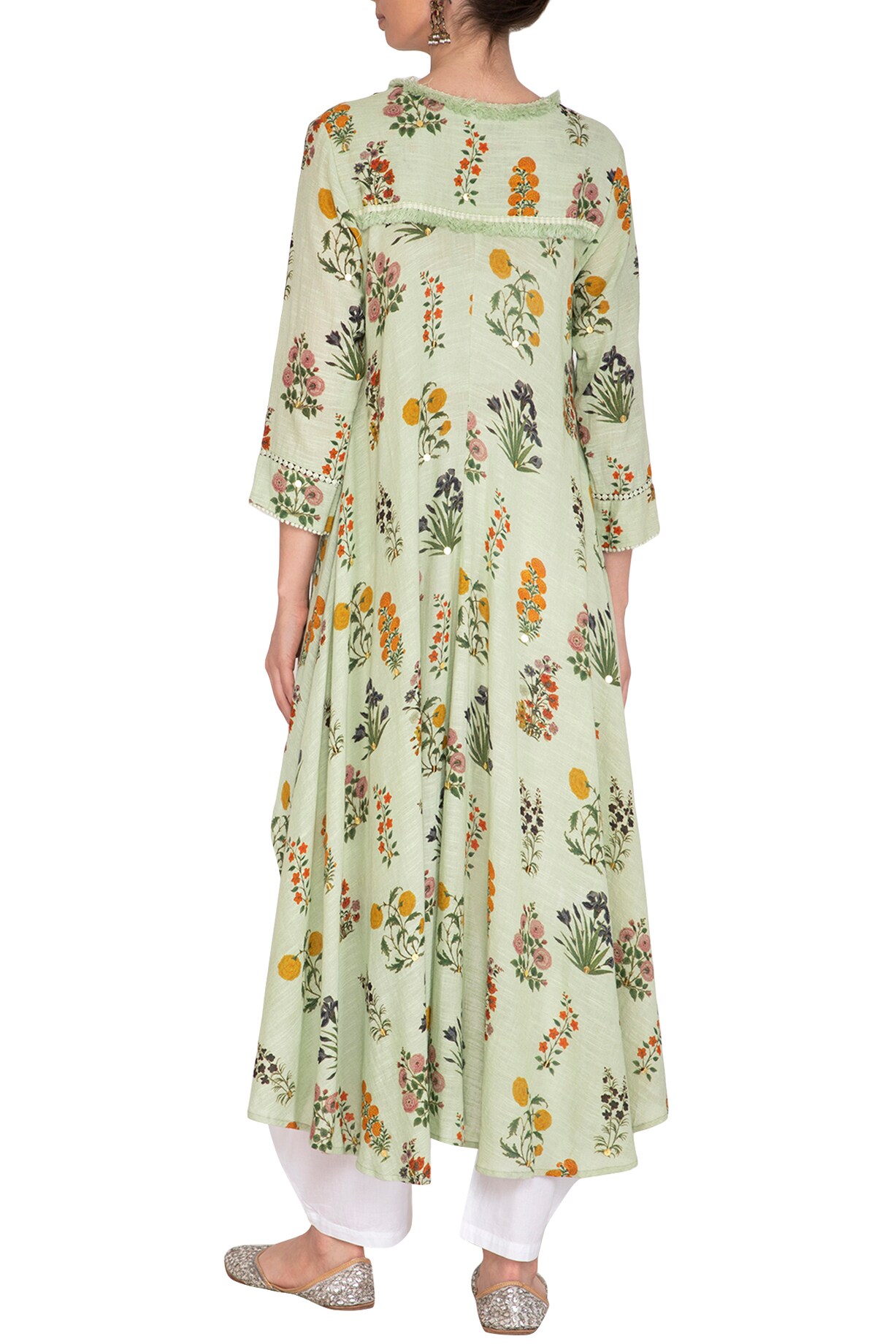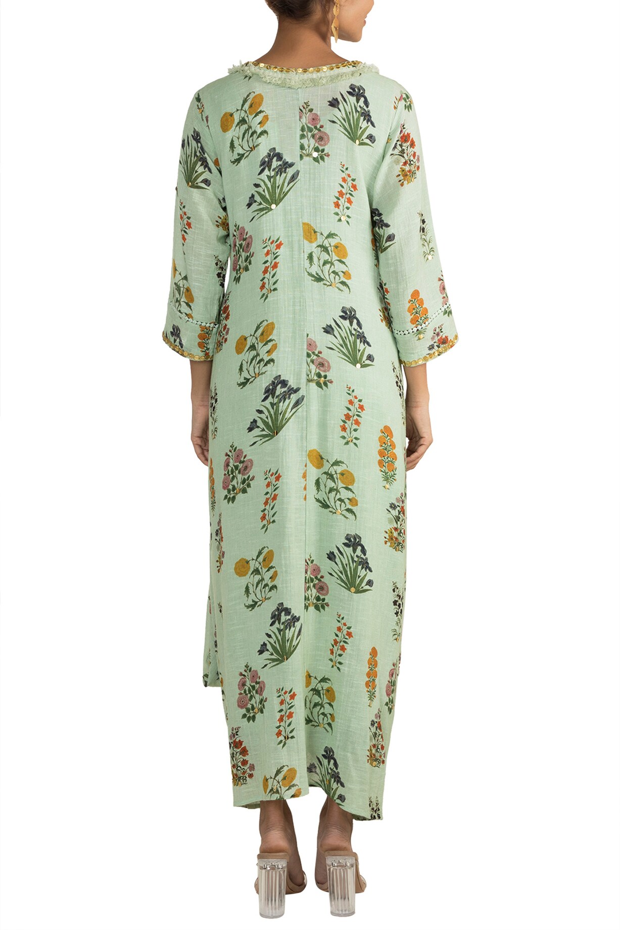 Mint Green Embellished Printed Kaftan With Dhoti Pants by Ayinat By ...