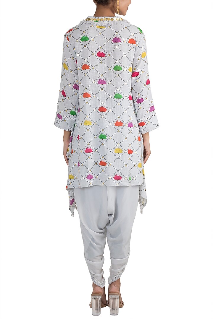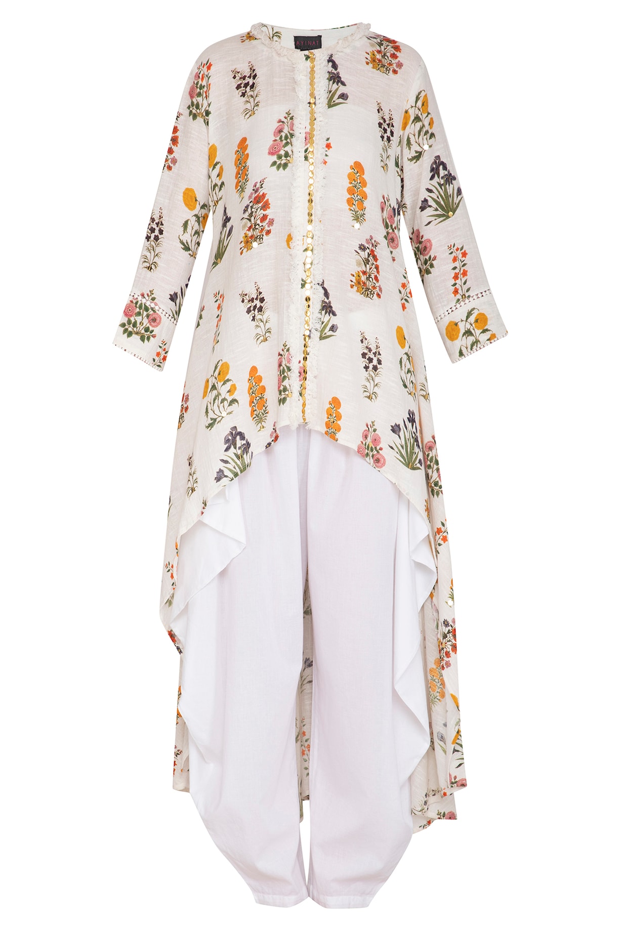 White High-Low Embroidered Tunic With Dhoti Pants by Ayinat By Taniya O ...