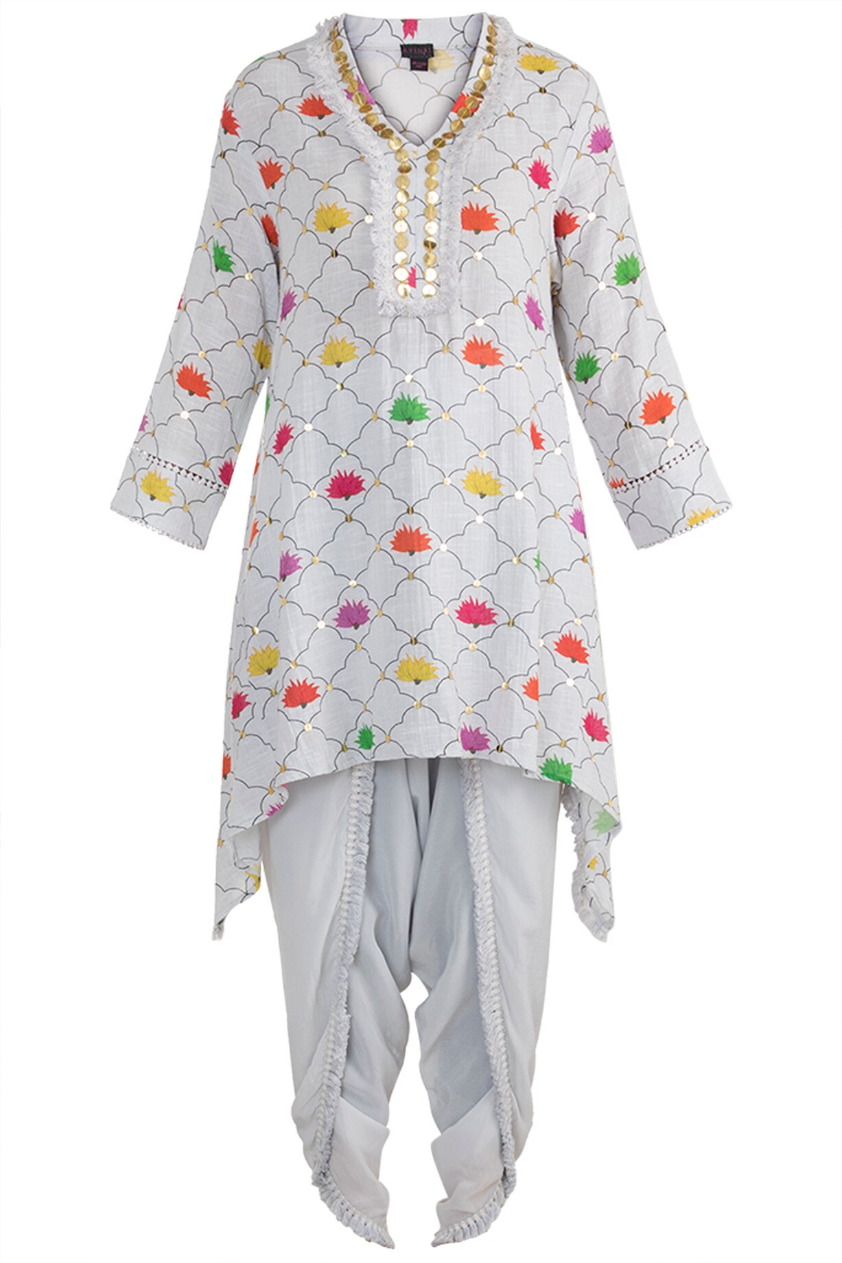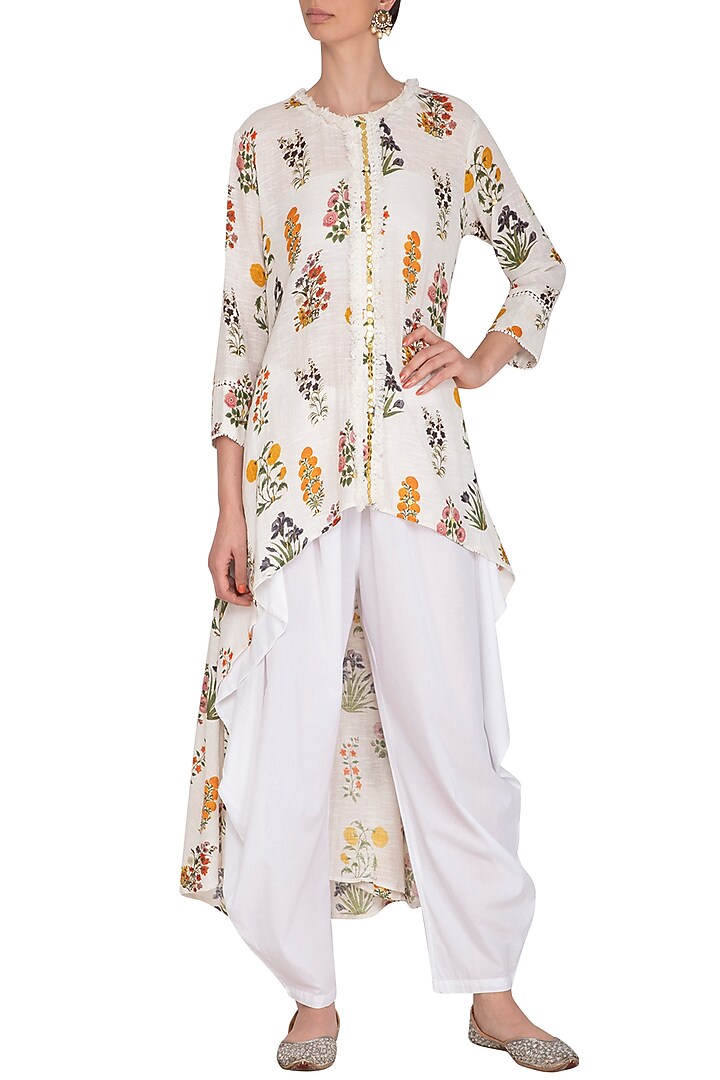 White Printed Embellished Tunic With Dhoti Pants by Ayinat By Taniya O ...