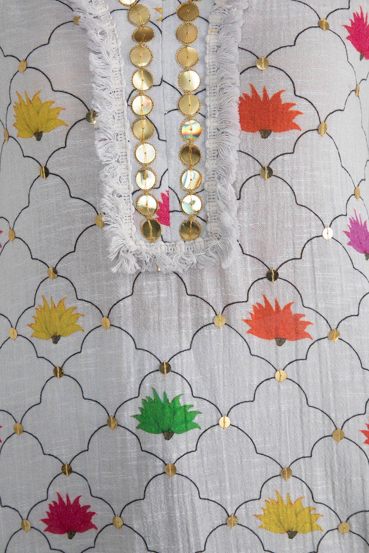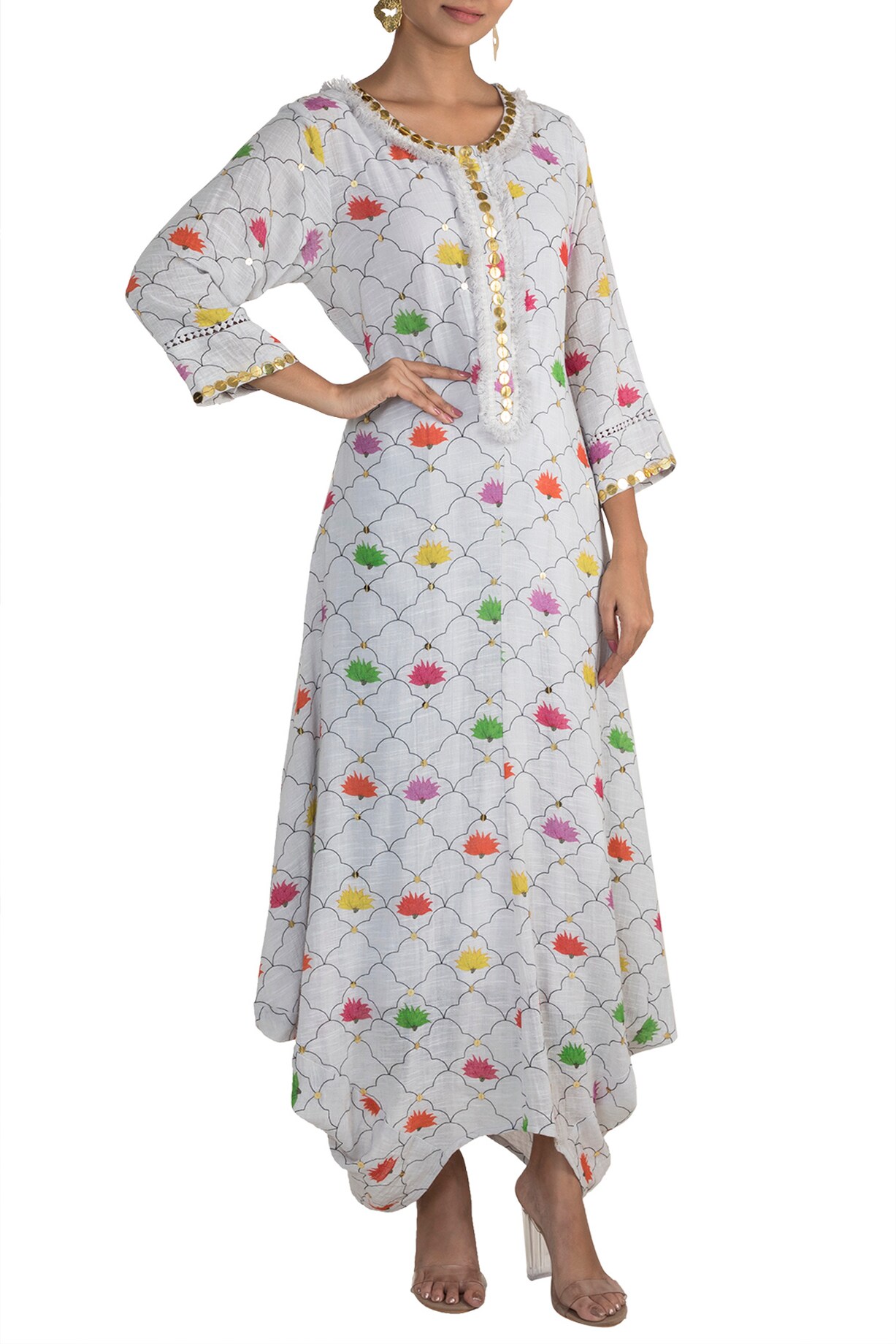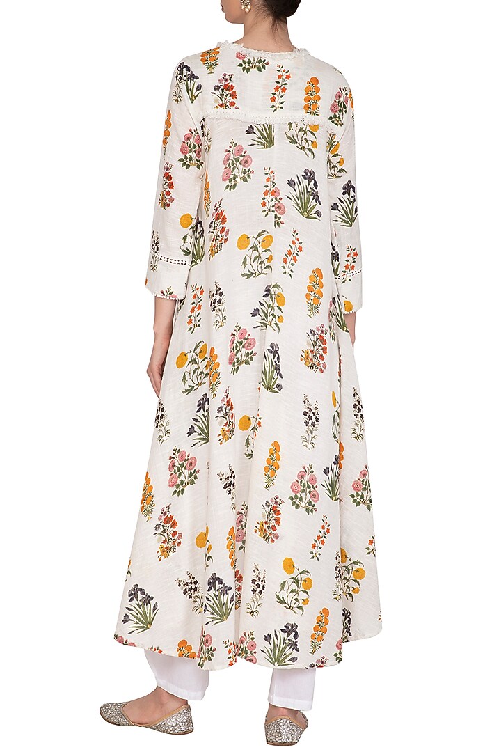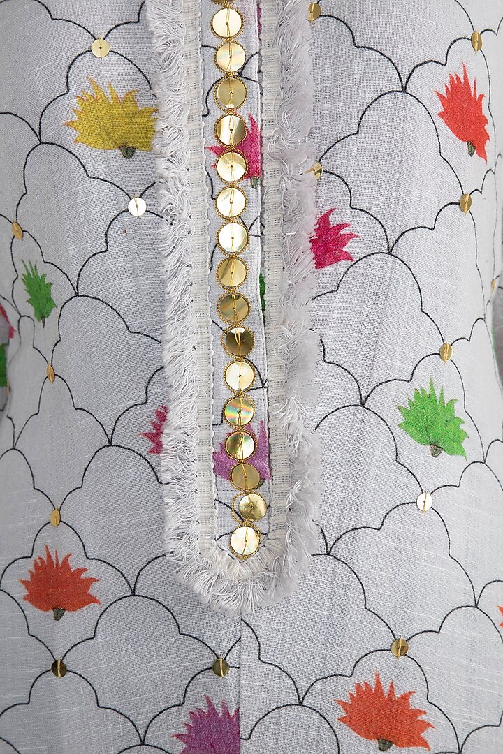 White Embellished Printed Kurta Dress With Inner Slip Design by Ayinat ...