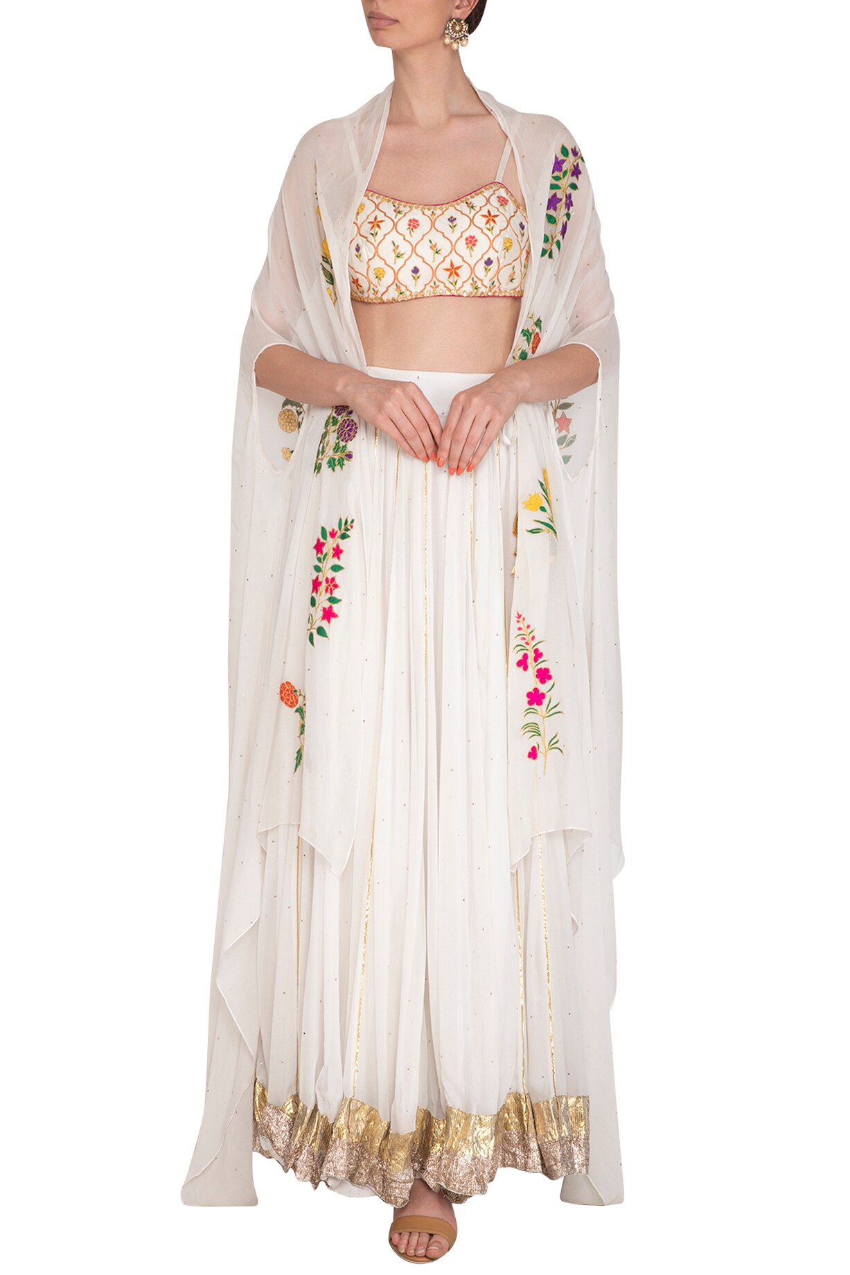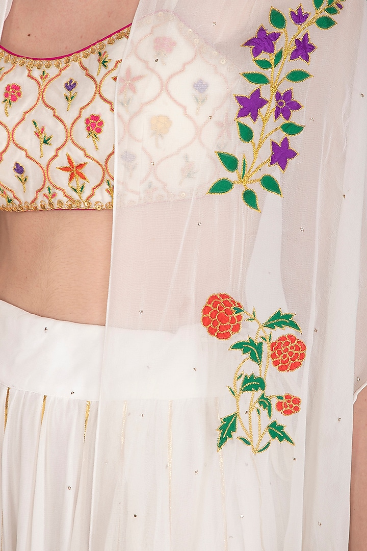 White Embroidered Lehenga Set With Cape by Ayinat By Taniya O'Connor at ...