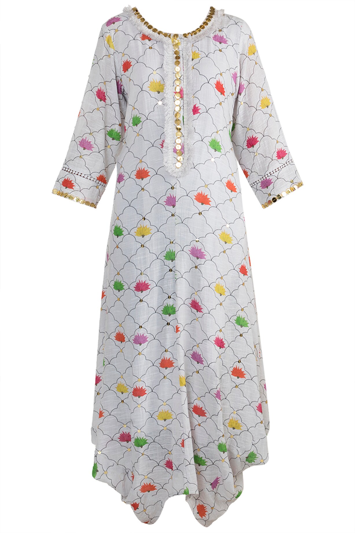 Multi Colored Embellished Printed Kaftan With Dhoti Pants by Ayinat By ...