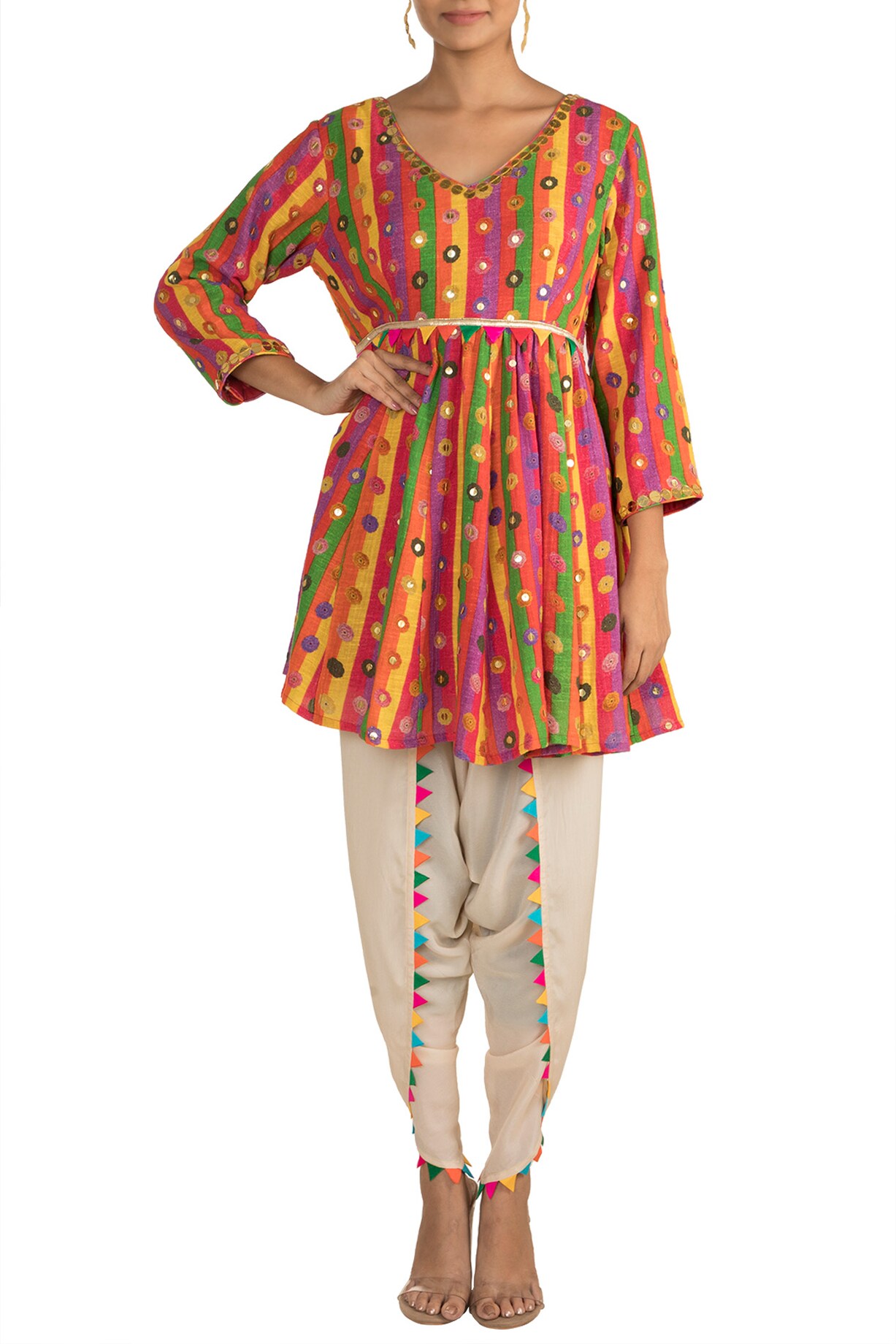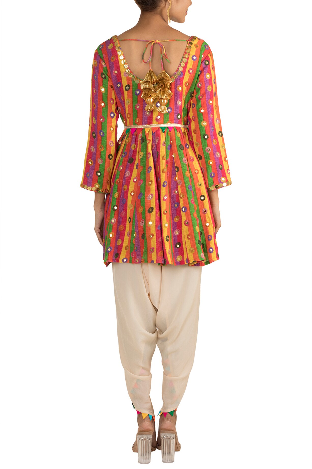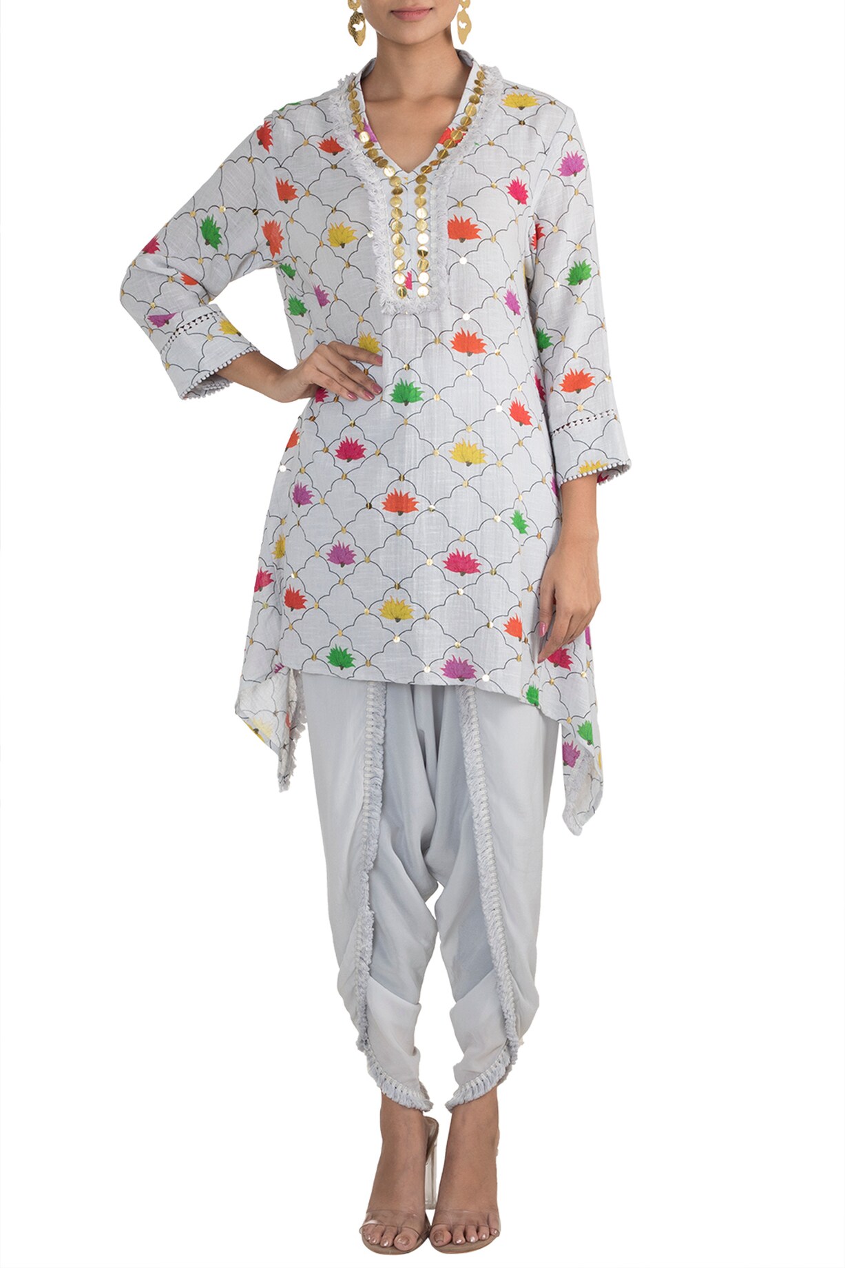 Multi Colored Embroidered Printed Kedia Top With Dhoti Pants Design by ...