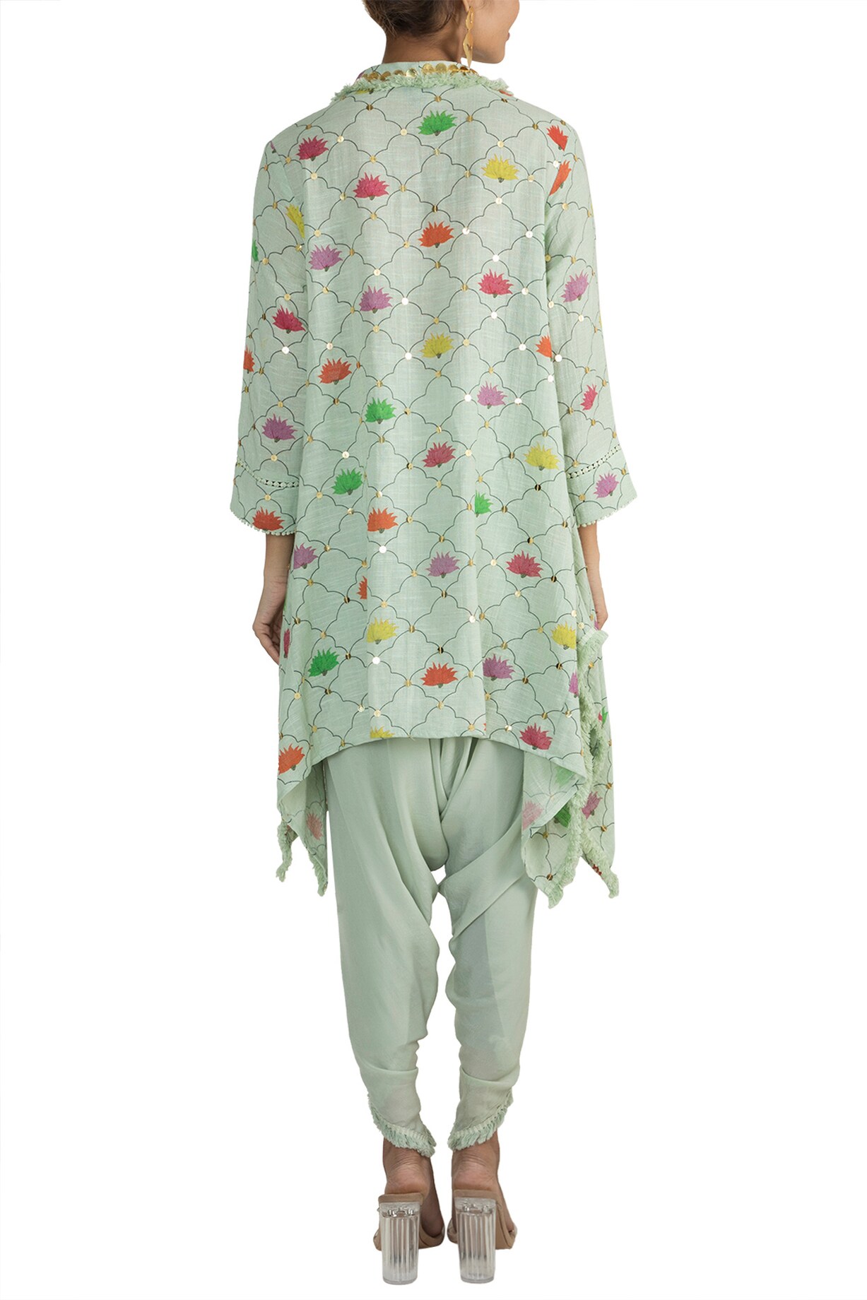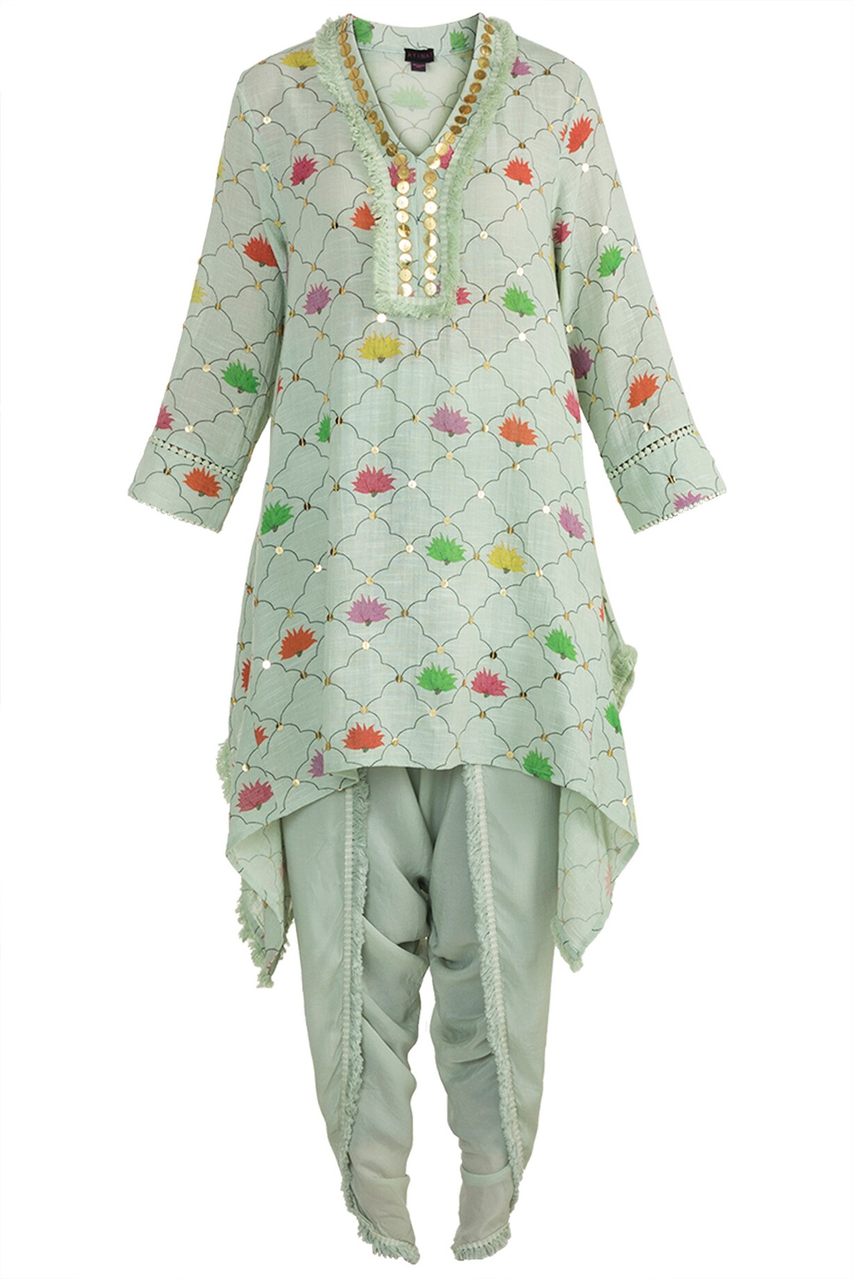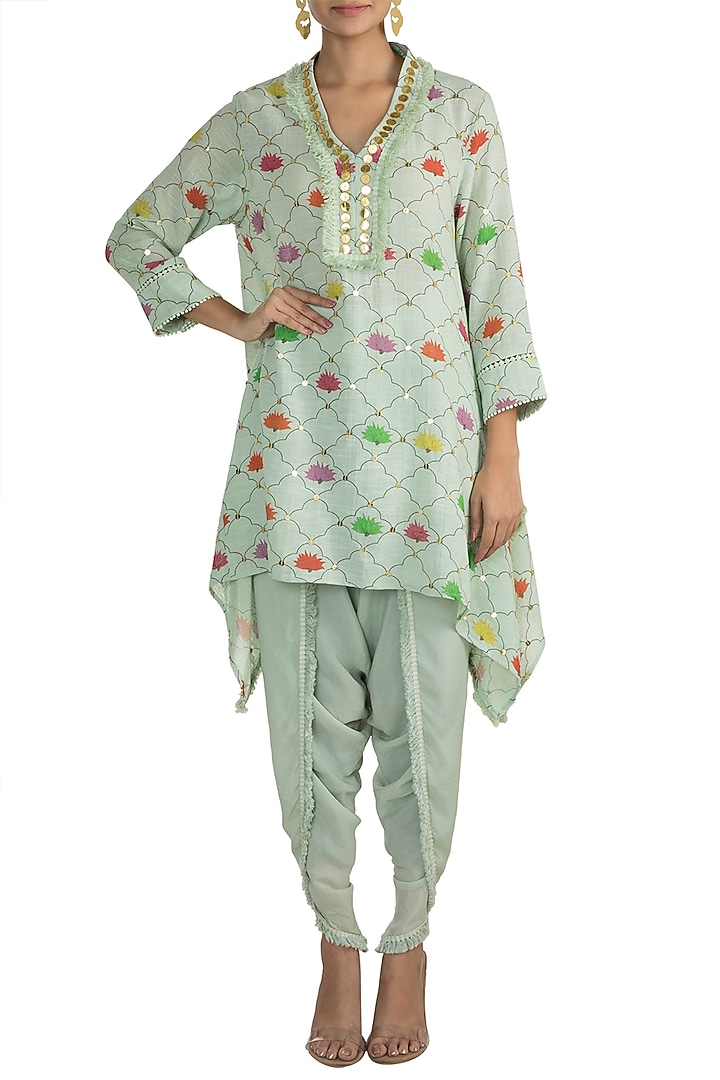 Mint Green Embellished Printed Tunic With Dhoti Pants by Ayinat By ...