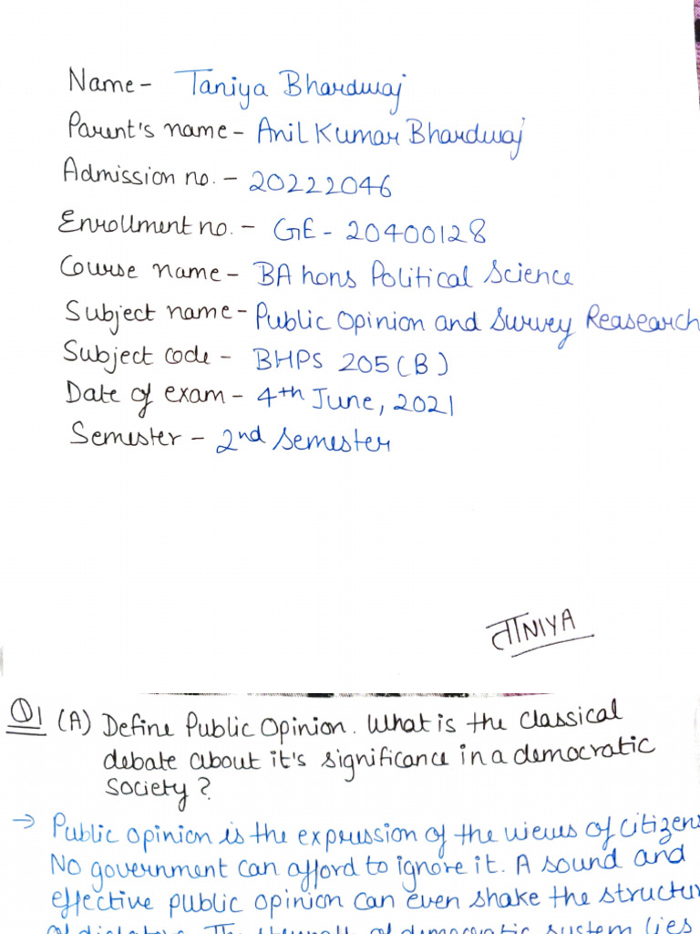 Q1 Part A by Taniya Bhardwaj Ba Hons Political Science | PDF