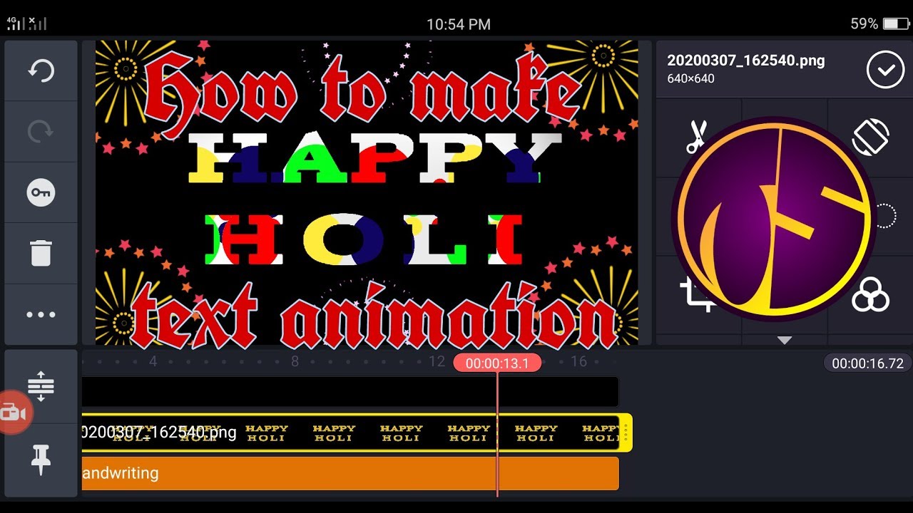 Happy holi text animation ,kinemaster tutorial by TS - YouTube