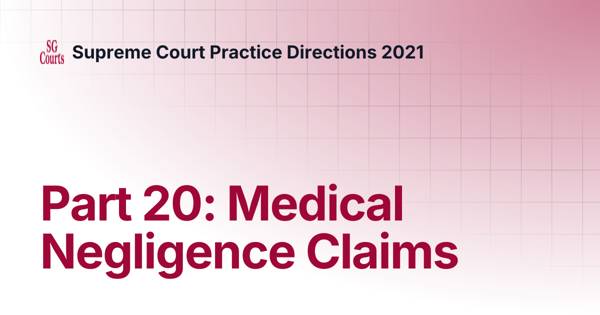 Part 20: Medical Negligence Claims | Supreme Court Practice Directions 2021