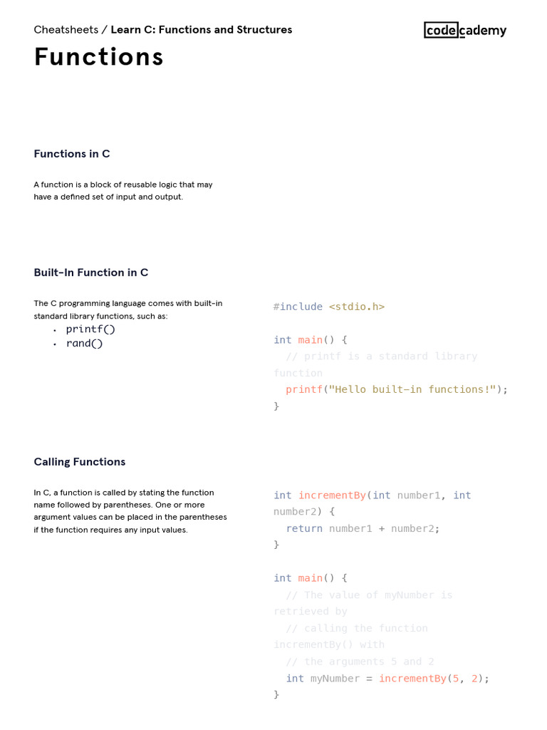 Functions and Structures: Functions Cheatsheet | PDF | Parameter ...