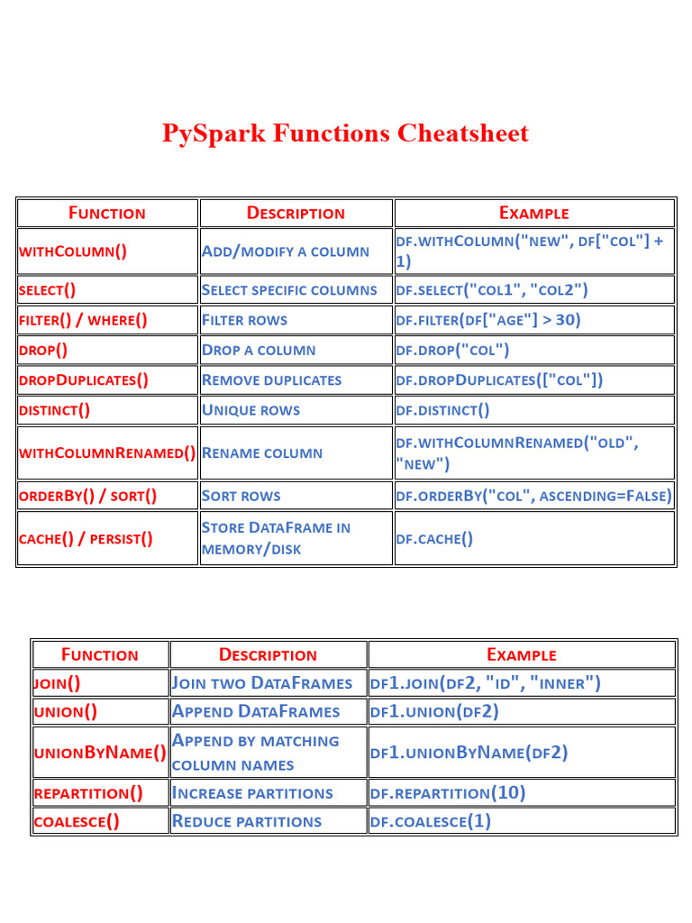 PySpark Functions Cheatsheet-1 | PDF | Computing | Computer Architecture