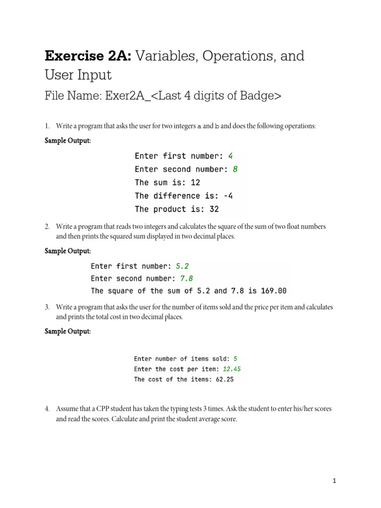 Exercise 2A Variables and User Input | PDF