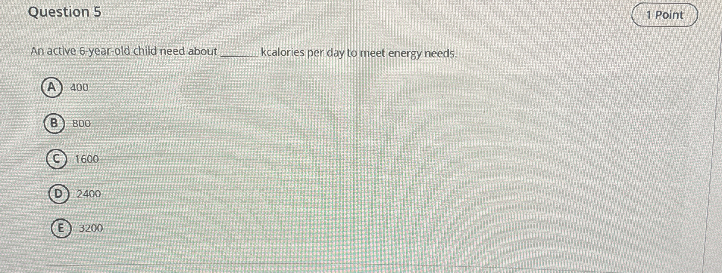 Solved Question 51 PointAn active 6 -year-old child need | Chegg.com