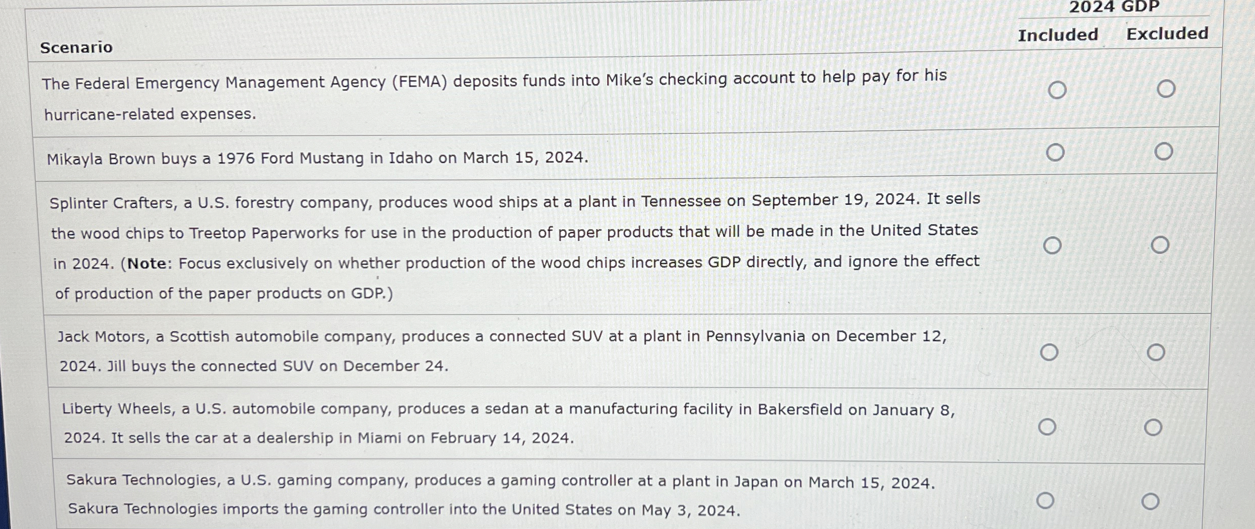 Solved ScenarioIncludedExcludedThe Federal Emergency | Chegg.com