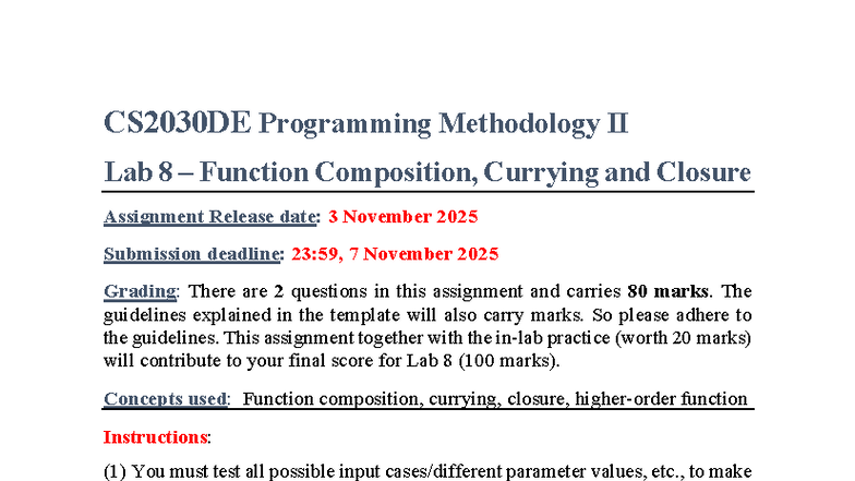 CS2030DE Lab 8: Function Composition, Currying & Closure Assignment ...