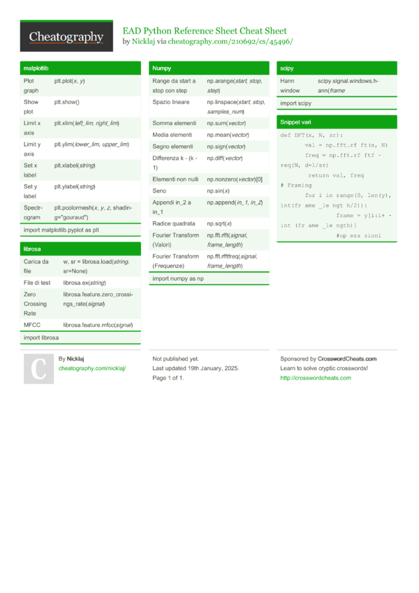 EAD Python Reference Sheet Cheat Sheet by Nicklaj - Download free from ...