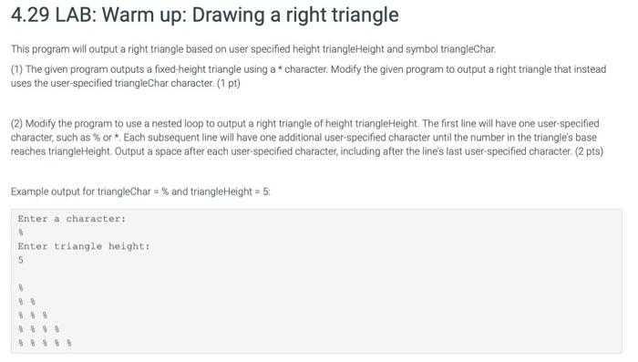 4.16 LAB: Warm up: Drawing a right triangle.odt - This program will ...