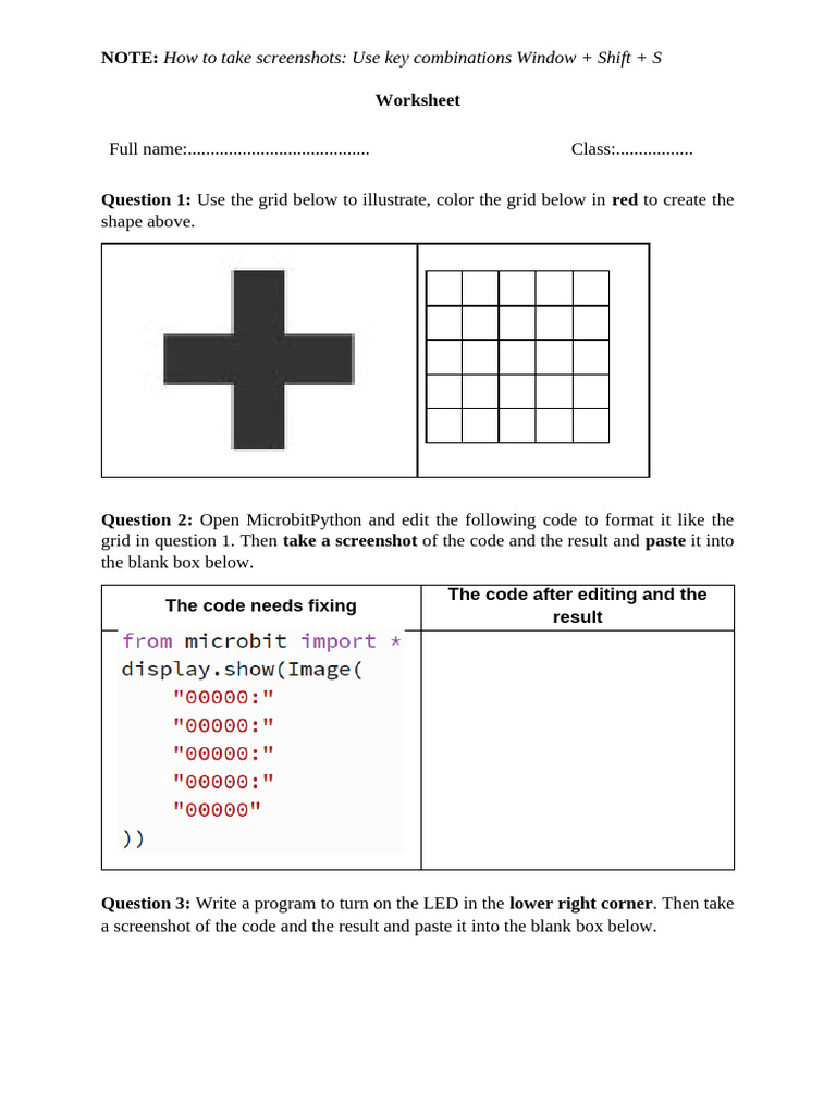 ICT Grade 6 Microbit Python Worksheet | PDF