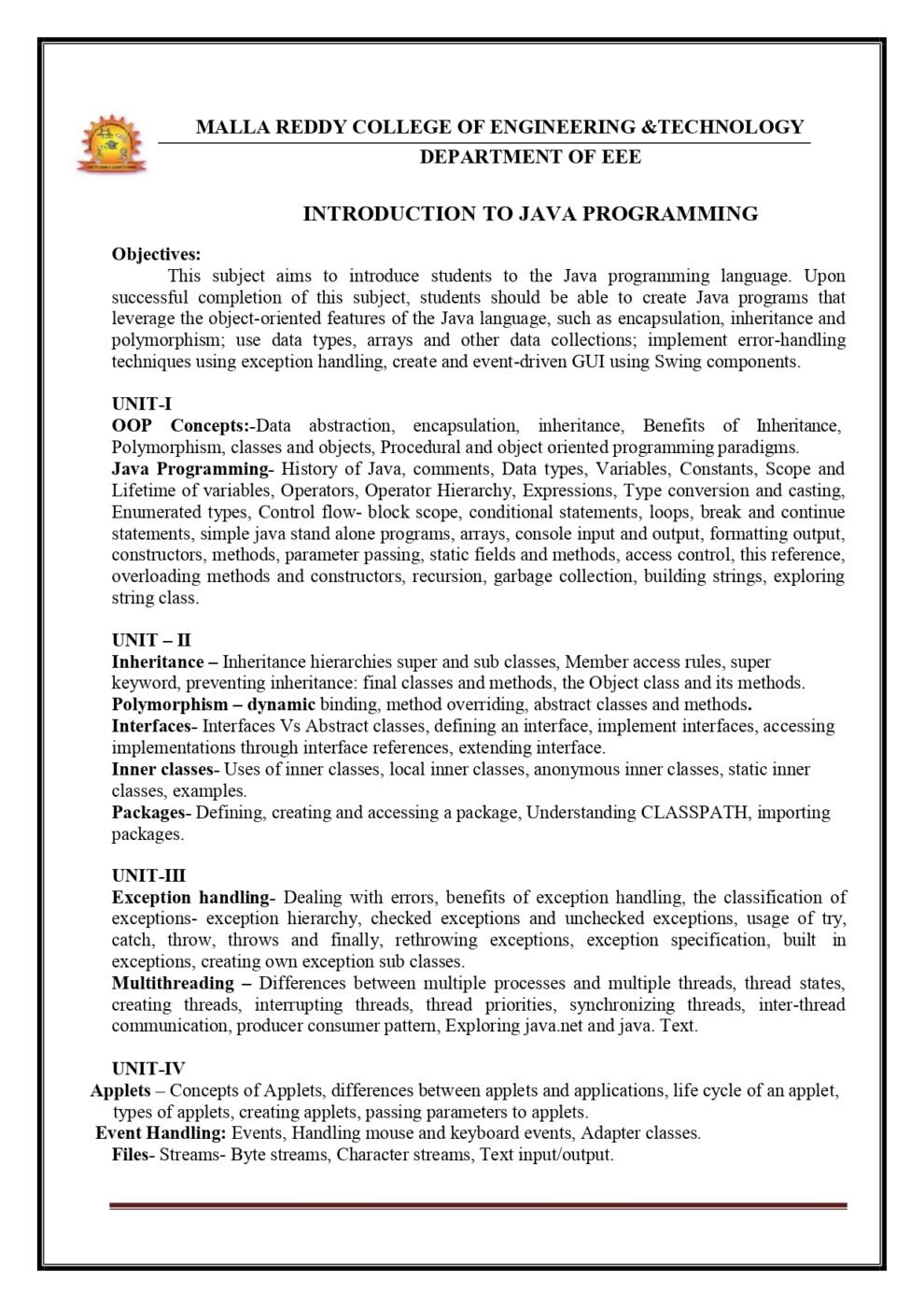 Java Programming - DIGITAL NOTES ON JAVA PROGRAMMING (R20A0508) B II ...