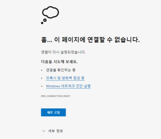[유익/윈도우] 구글 크롬/엣지 에러 해결/ERR_CONNECTION_RESET 오류해결방법/흠... 이 페이지에 연결할 수 ...