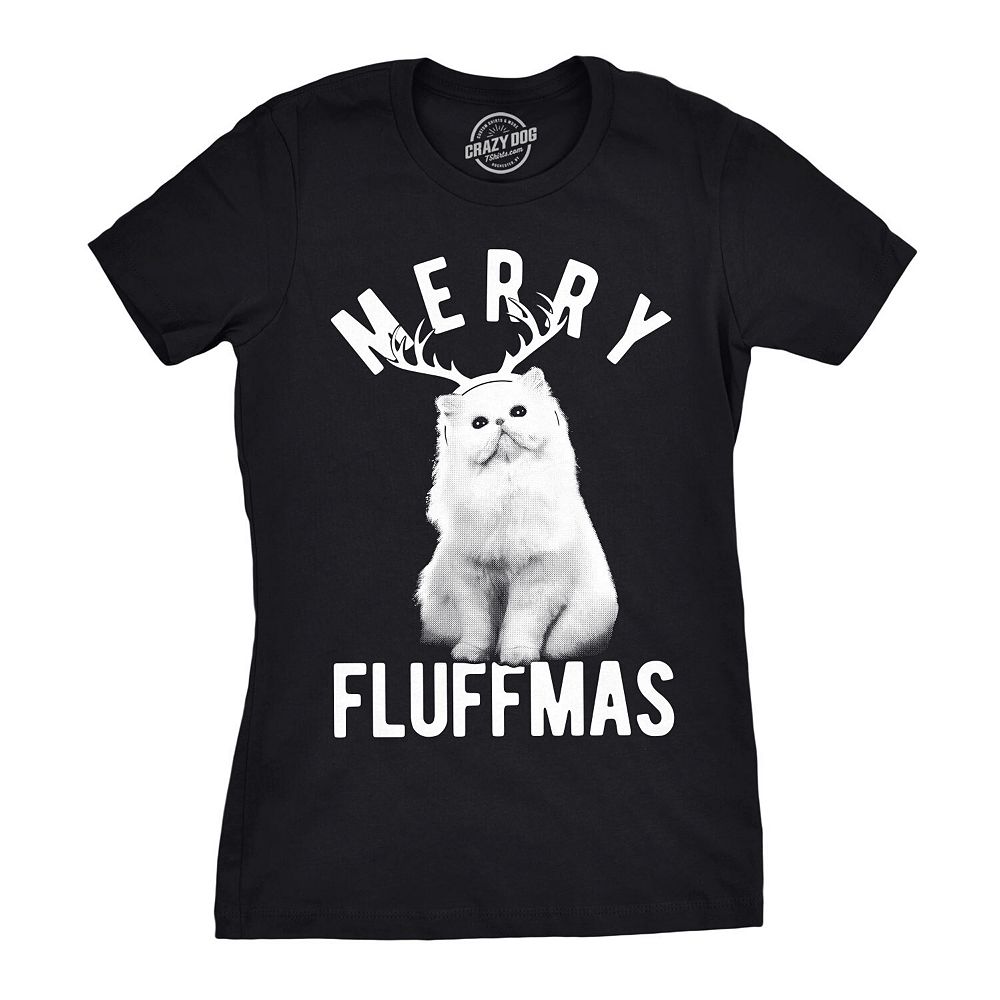 Womens Merry Fluffmas T Shirt Funny Christmas Cat Tee