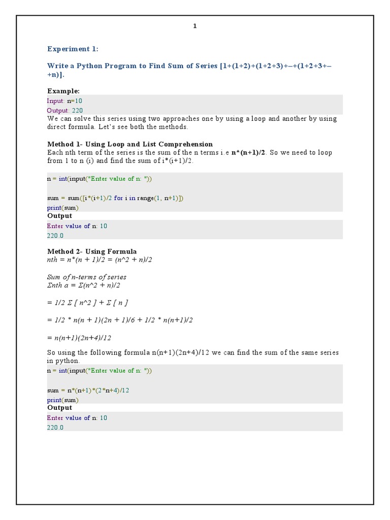 Experiment 1: Write A Python Program To Find Sum of Series (1+ (1+2 ...