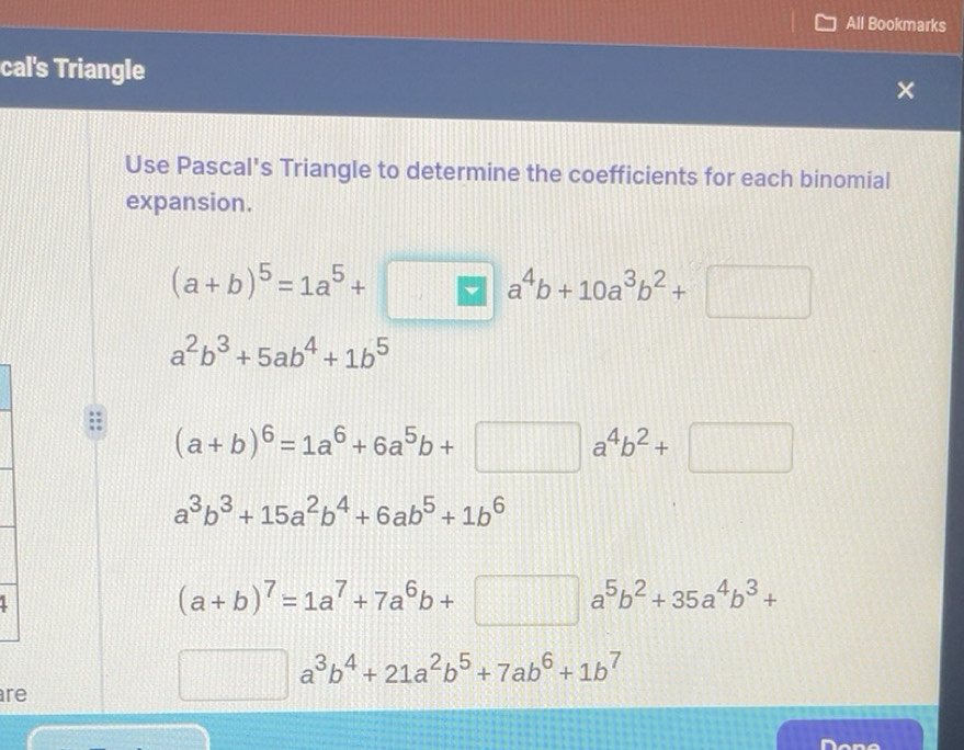 Risolto:All Bookmarks cal's Triangle Use Pascal's Triangle to determine ...