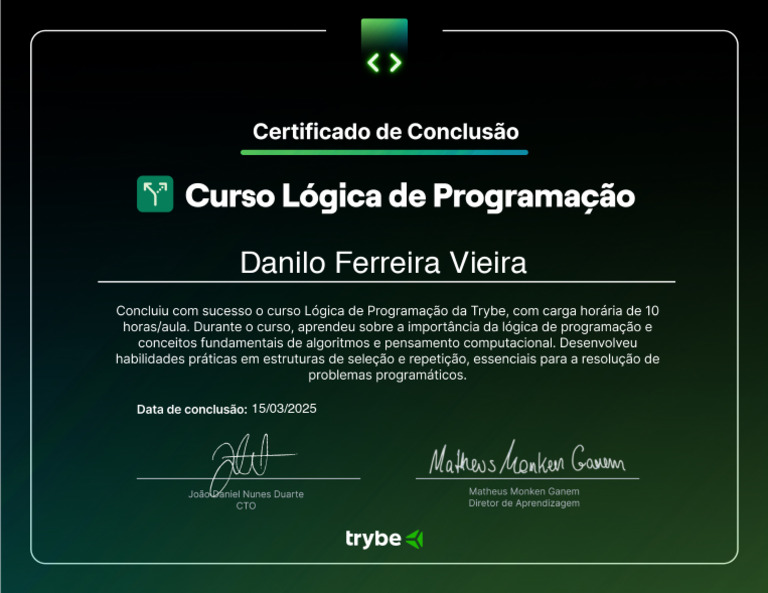 Certificado de Conclusão Do Curso de Lógica de Programação | PDF