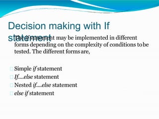 Decision Making Statements: If, If..else, Nested If..else and if-elif ...