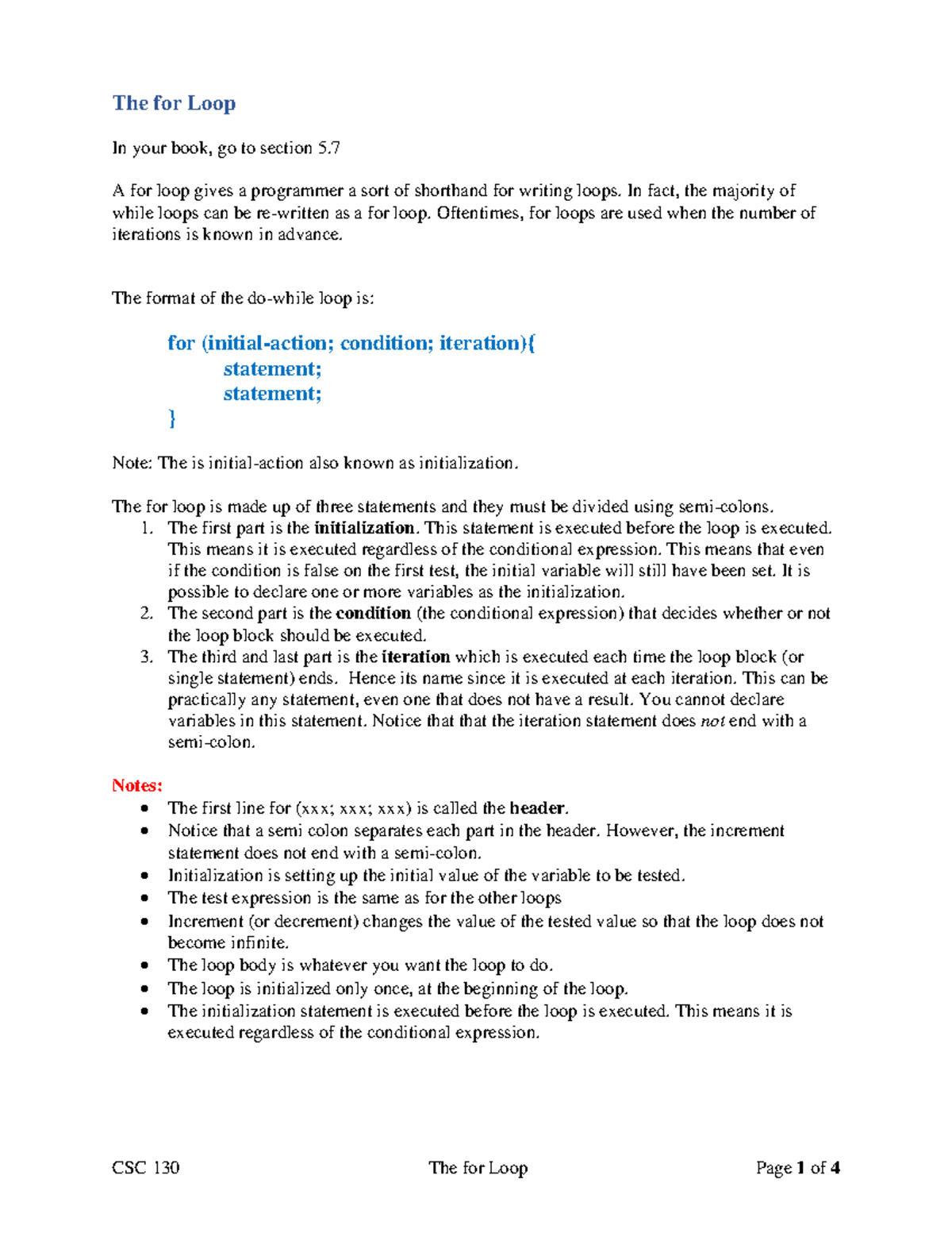 THE FOR LOOP - THE FOR LOOP - THE FOR LOOP This is the most commonly ...