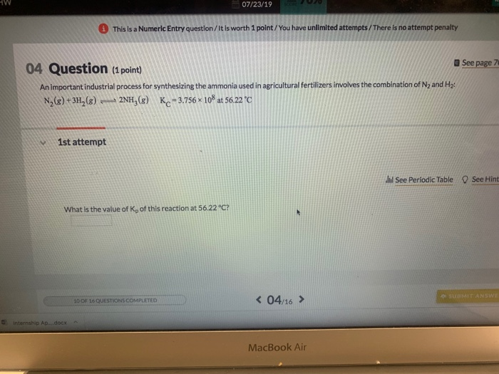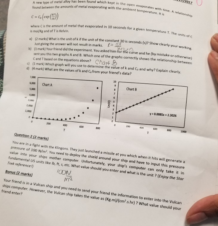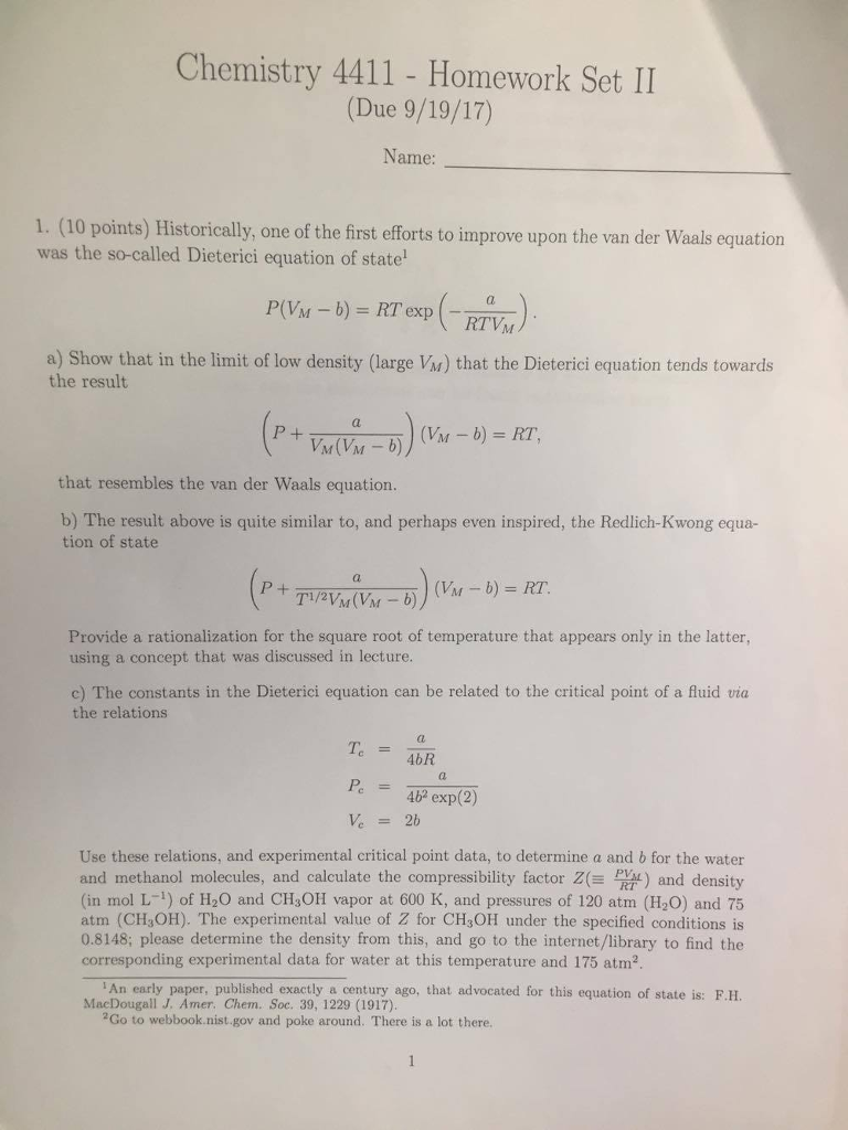 Solved Physical Chemistry Question: | Chegg.com