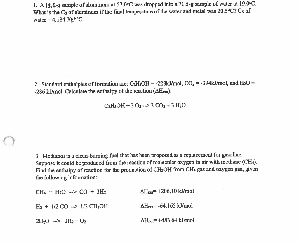 Solved Chemistry 30 U1 Thermochemistry Assignment This is | Chegg.com