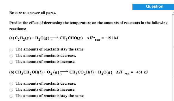 Solved Predict the effect of decreasing the temperature on | Chegg.com