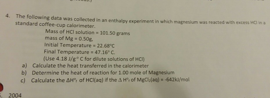 Solved U UUU.) 4. ine Following data was collected in an | Chegg.com