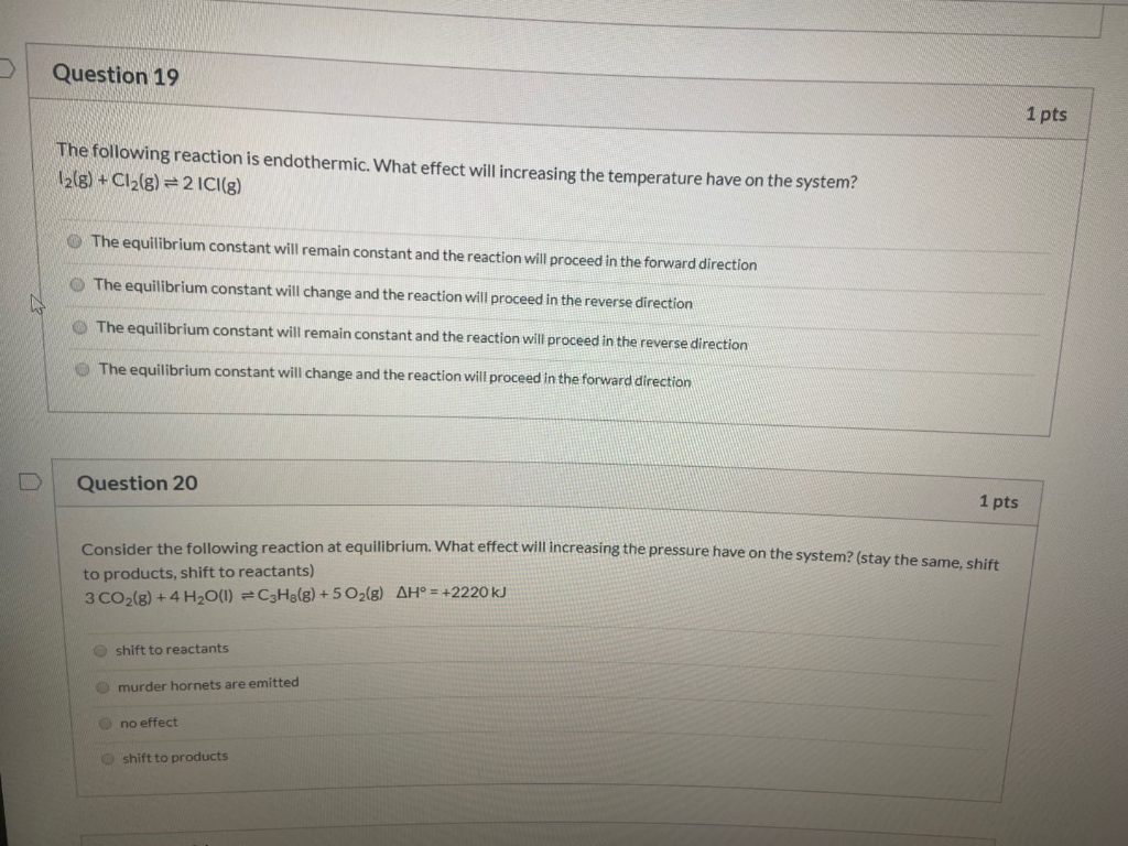 Solved Question 19 1 pts The following reaction is | Chegg.com