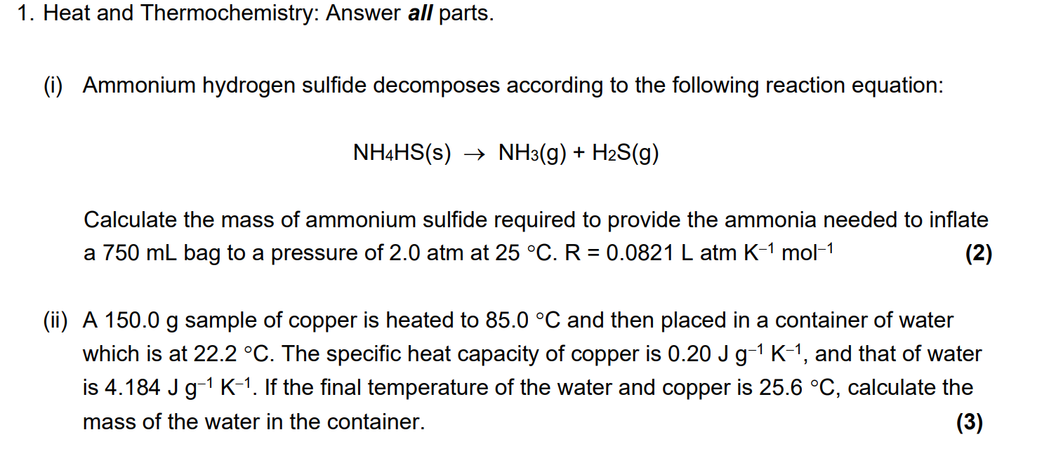 Solved 1. Heat and Thermochemistry: Answer all parts. (i) | Chegg.com